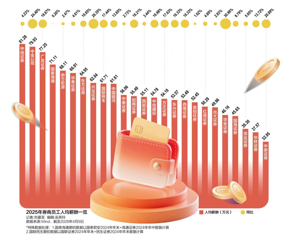 “券业一哥”人均赚超80万 2025年券商薪酬曝光