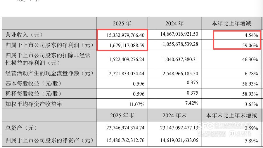 4月14日晚,燕京啤酒披露年报:2025年实现收入153.33亿元,同比增长4.54%,实现归母净利润16.79亿元,同比大涨59%,收入、盈利创下历年新高。