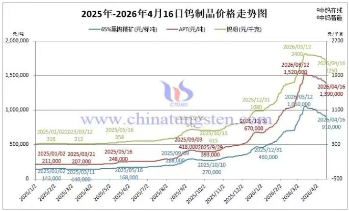 2)持货商集中获利了结:鉴于2026年初以来钨价累计涨幅已超110%,大量持货商选择集中出货以锁定利润,部分甚至出现恐慌性抛售,进一步加剧了价格的下行压力。