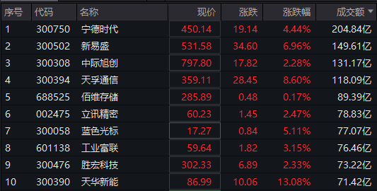 个股方面,中际旭创半日成交额超145亿元居首,华工科技、新易盛、宁德时代成交额靠前。