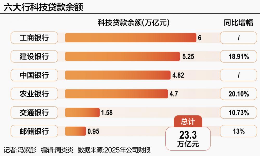 这些布局已在规模上显现成效。截至2025年末,六家国有大行科技贷款余额合计突破23.3万亿元,同比增速普遍保持在10%以上。同时,兴业、中信、浦发、招商等股份行的科技金融贷款余额均已超过万亿元。