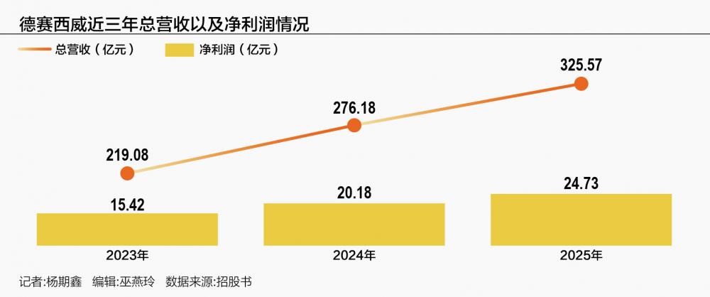 财务数据显示,德赛西威近年来业绩保持稳健增长。2023年、2024年和2025年,公司总营收分别为人民币219.08亿、276.18亿和325.57亿元;相应的净利润分别为人民币15.42亿、20.18亿和24.73亿元,三年累计净利润超过60亿元。