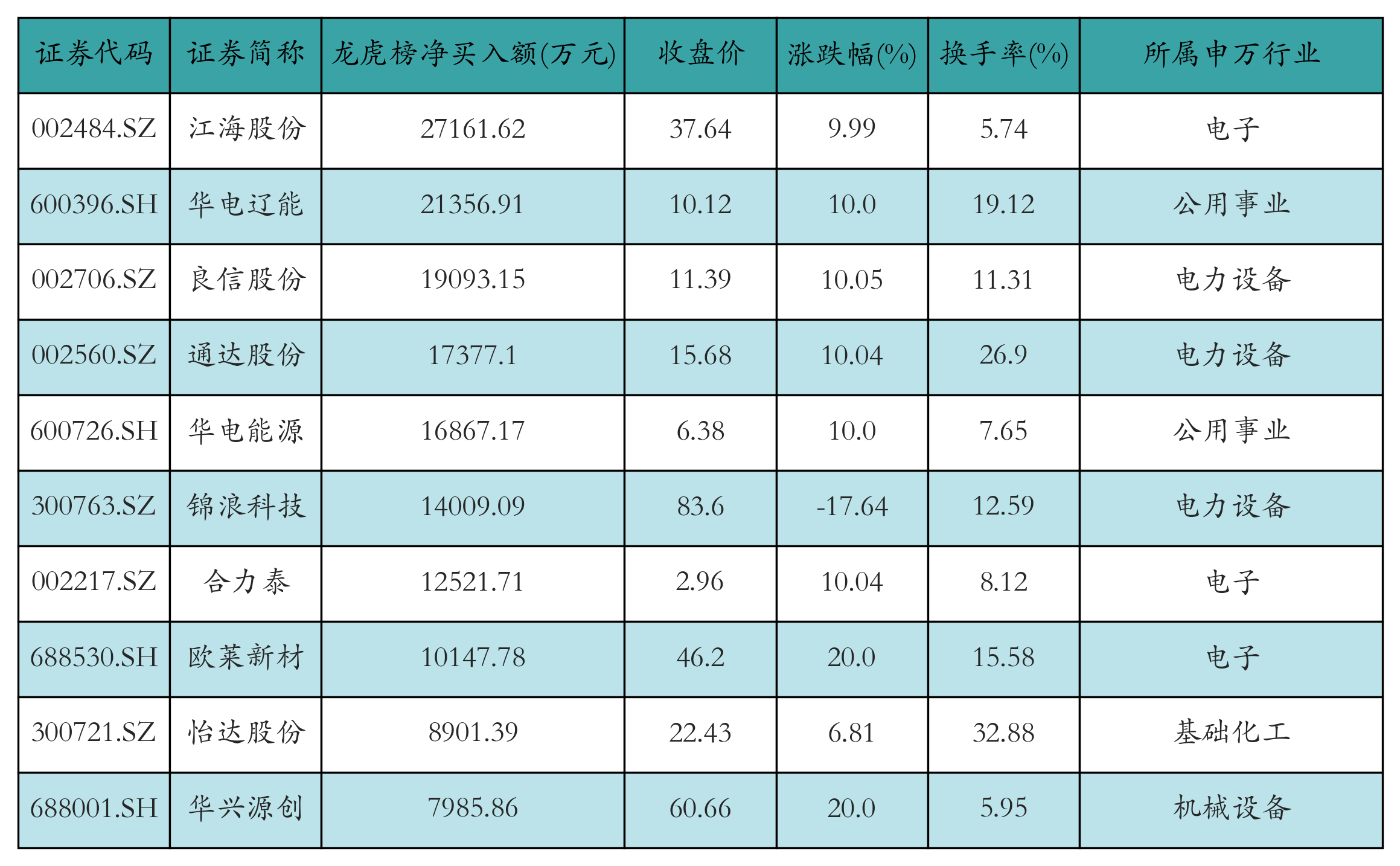 昨日龙虎榜营业部净买入额前10详情见下表: