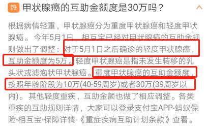 而且根据相互宝调低甲状腺癌理赔款的应对措施来看,目前的相互宝绝对是值得信任的。