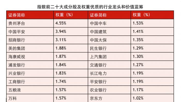您好,具体的名单指数公司暂不对外完全披露,不过你可以在Wind资讯搜索参考名单。以下是该指数前二十大权重股名单,供你参考: