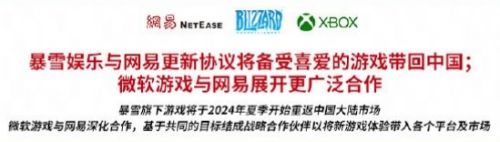2024年4月10日,网易游戏、暴雪中国宣布重新达成合作。在过往已超十五年的合作基础上,暴雪与网易正在努力制定回归计划,未来将公布更多细节。