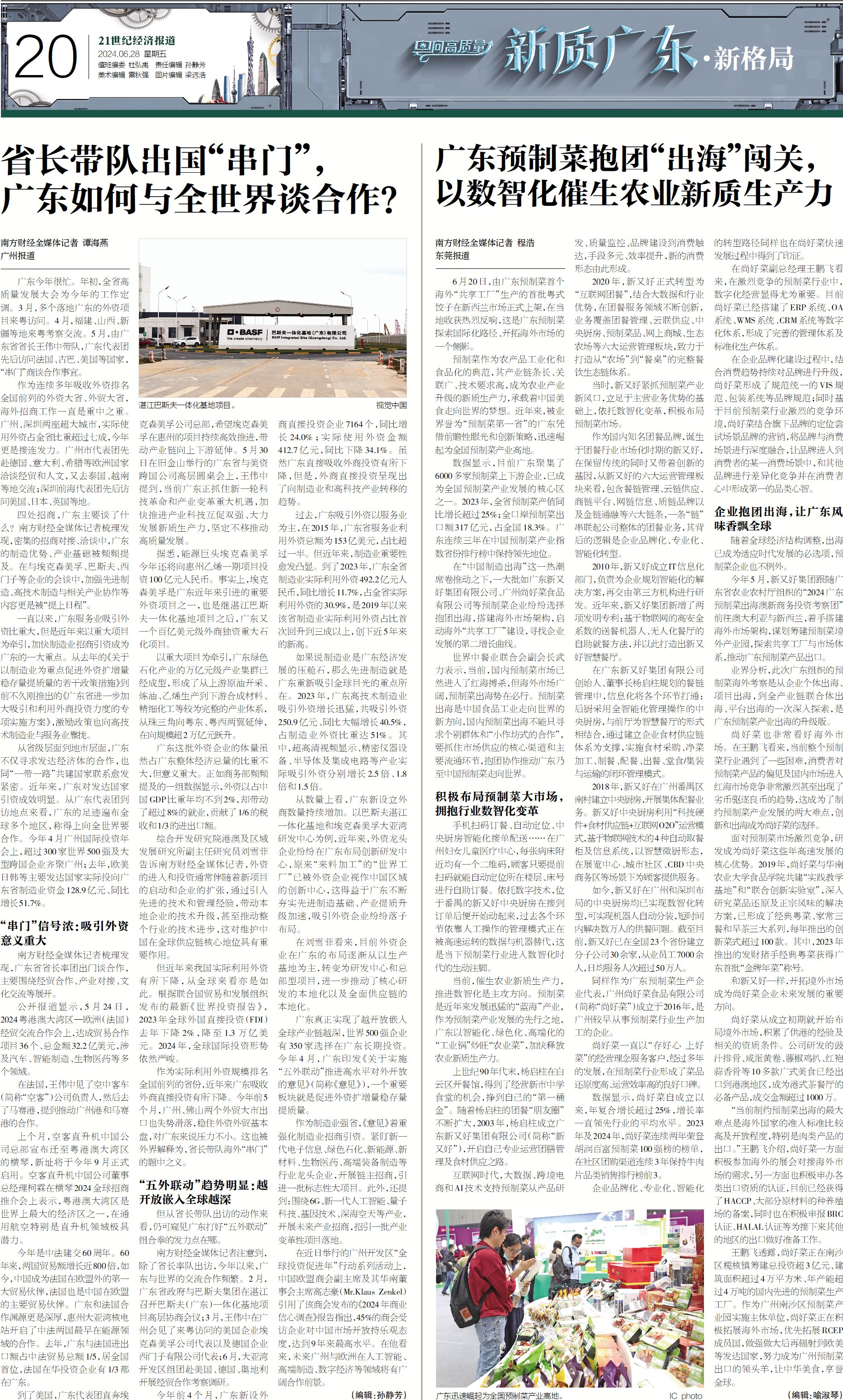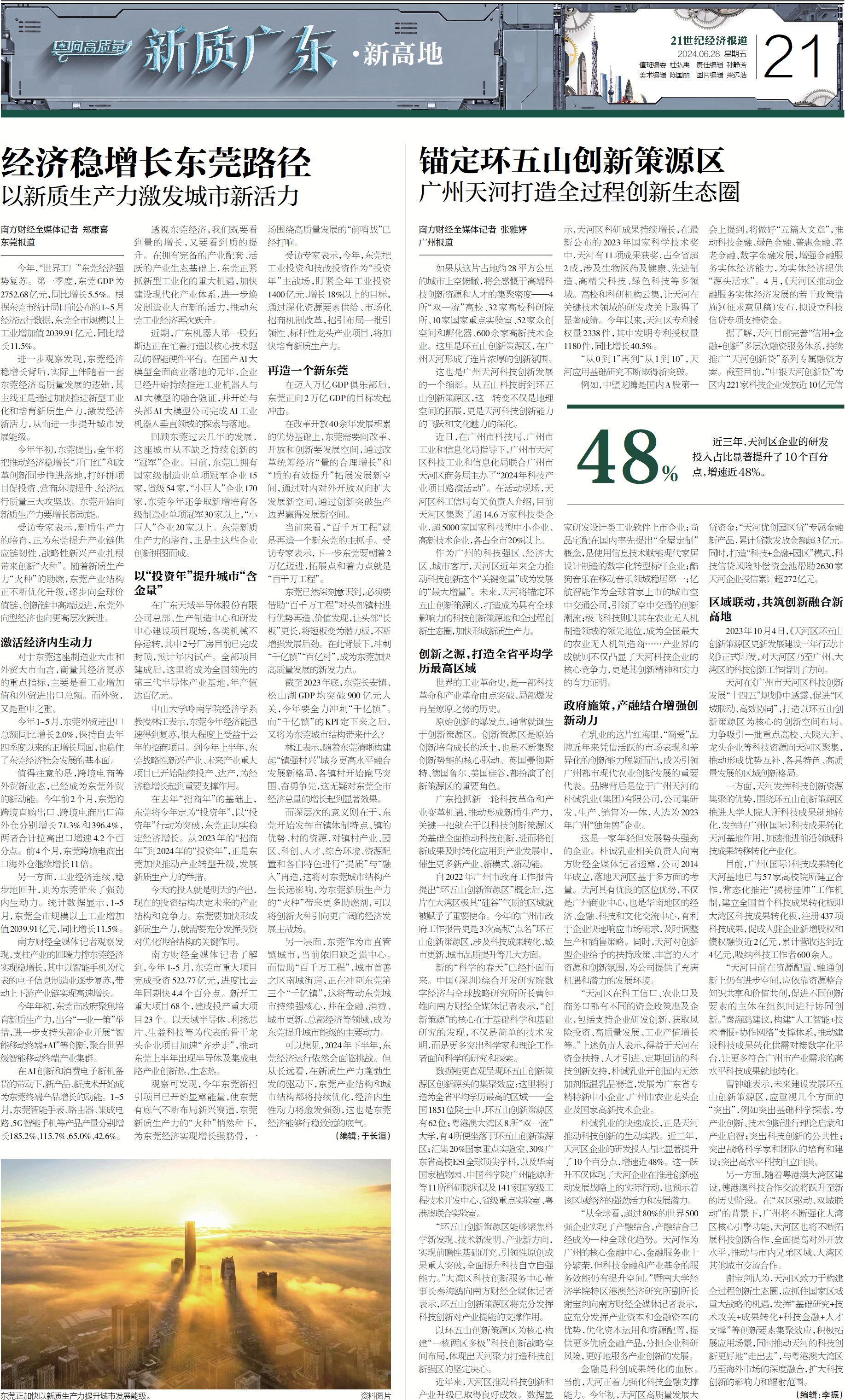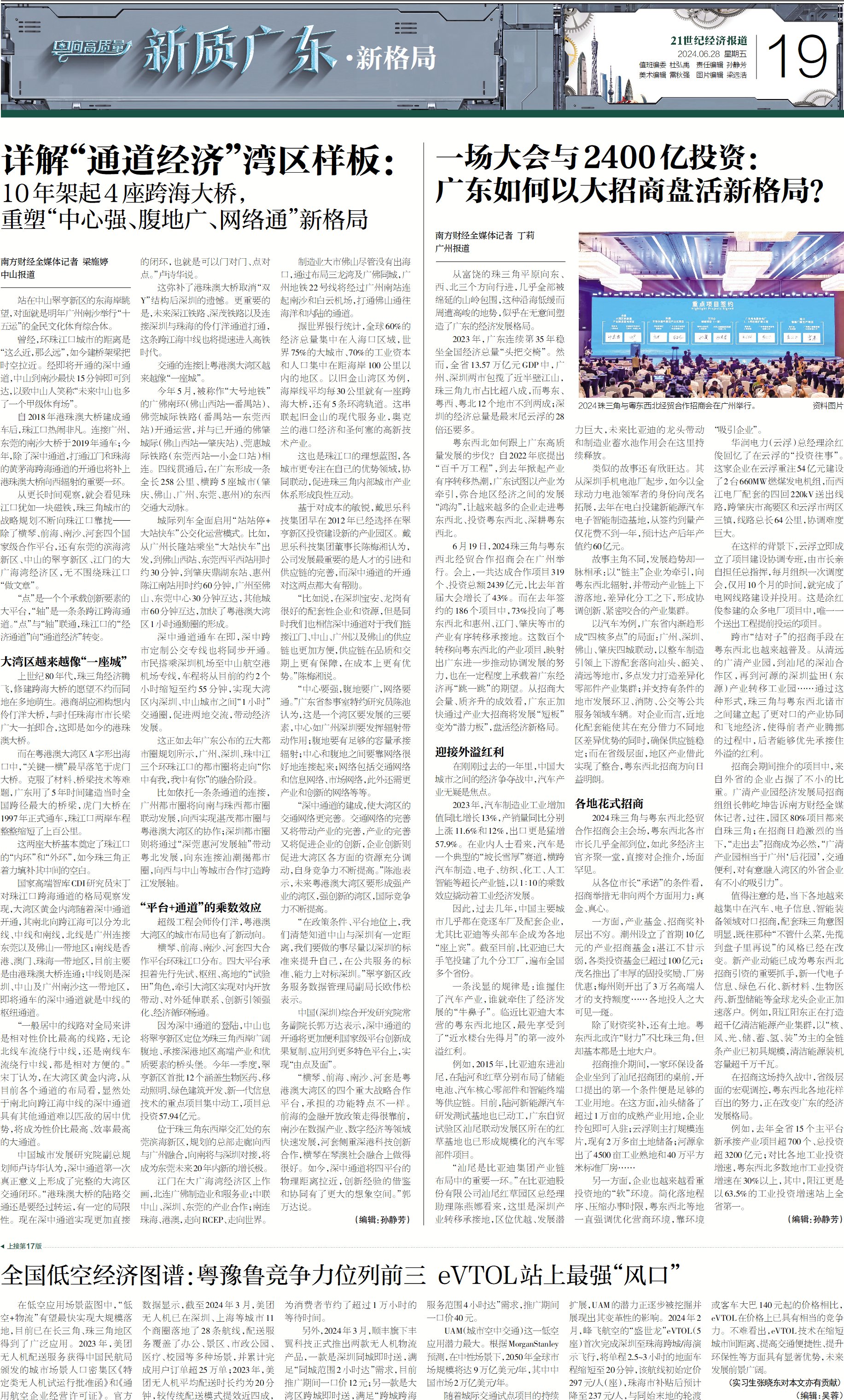 【刊首语】万众瞩目,翘首以盼。跨越珠江东西两岸的超级工程——深中通道开通在即。在粤港澳大湾区这片热土上,10年间架起了4座跨海大桥,重塑了“中心强、腹地广、网络通”的发展新格局。2024年行程过半,广东聚焦省委“1310”具体部署,锚定发展新质生产力这一推动高质量发展的内在要求和重要着力点,把创新落到企业上、产业上、发展上,正奋力再造一个靠创新进、靠创新强、靠创新胜的现代化“新广东”。