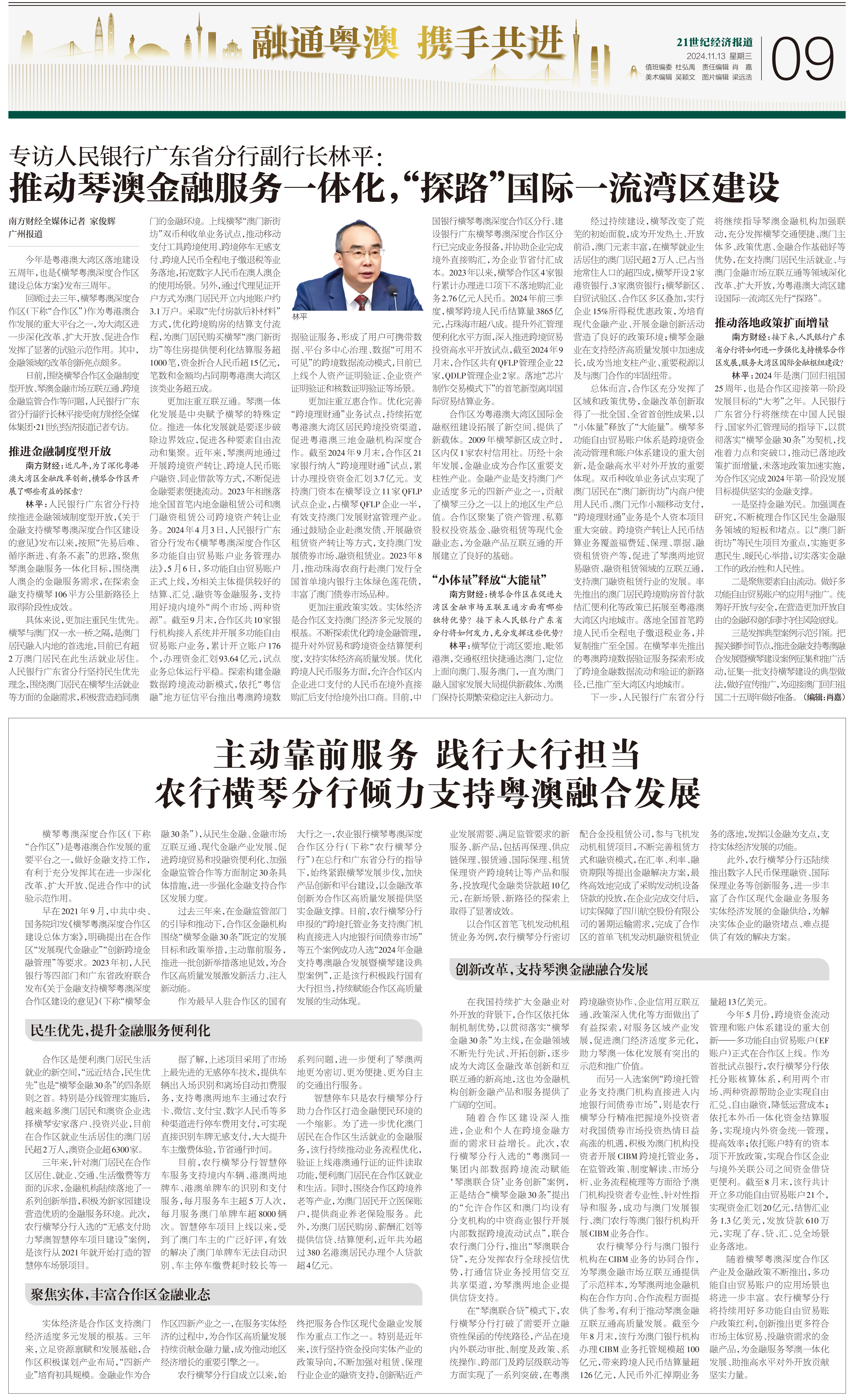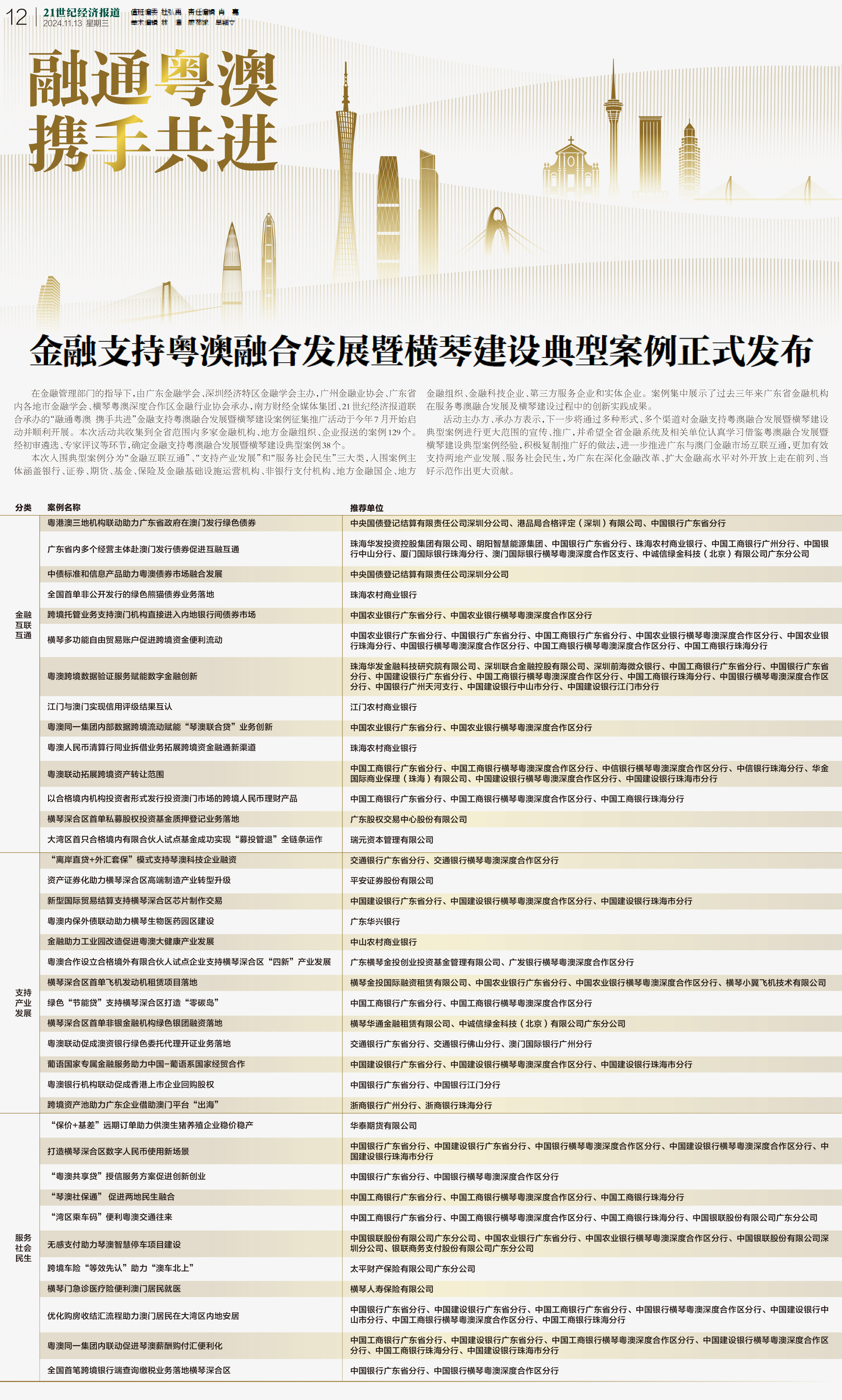 建行架设跨境金融桥梁 推动粤澳深度融合发展 建行横琴分行入围“2024年金融支持粤澳融合发展暨横琴建设典型案例”