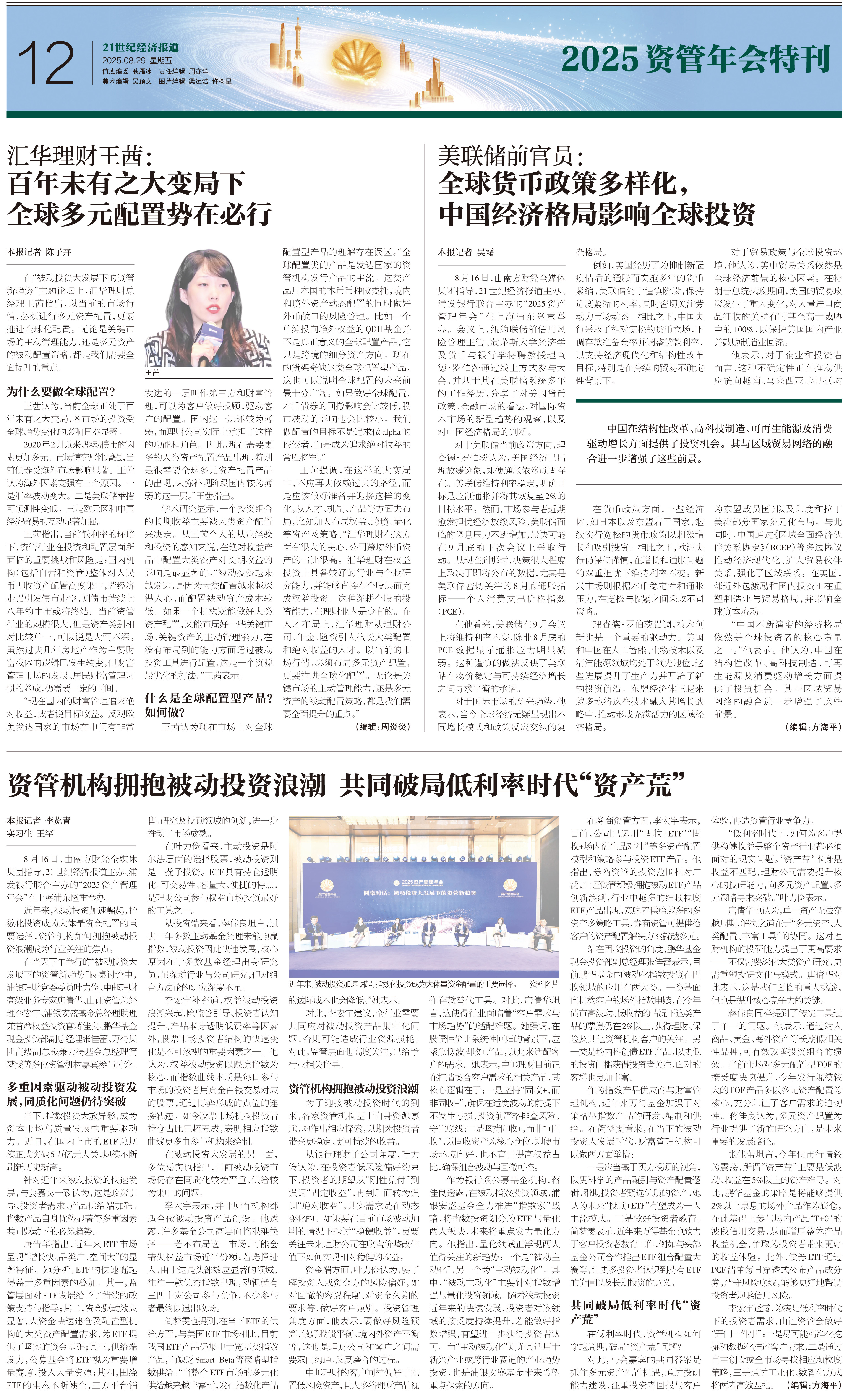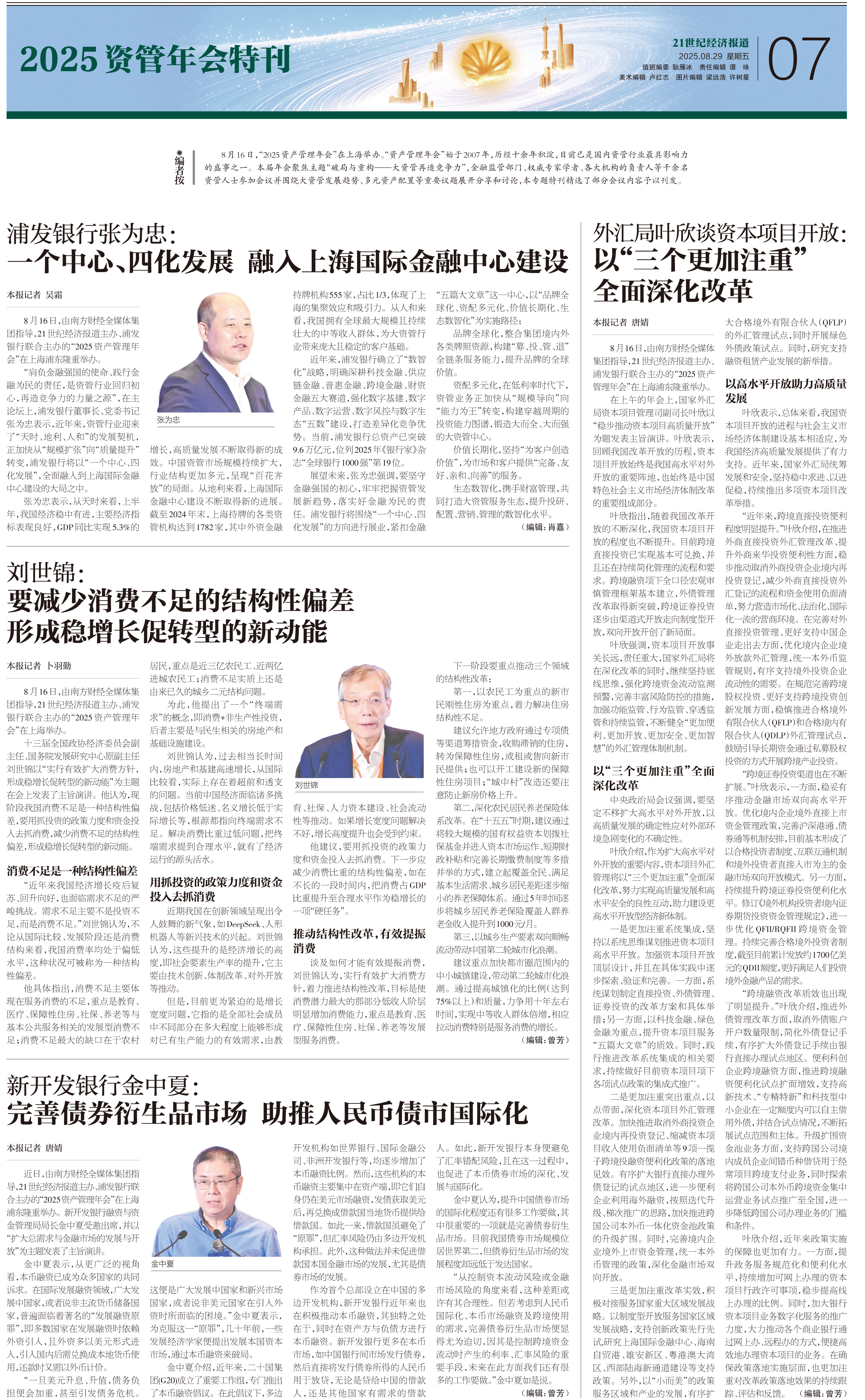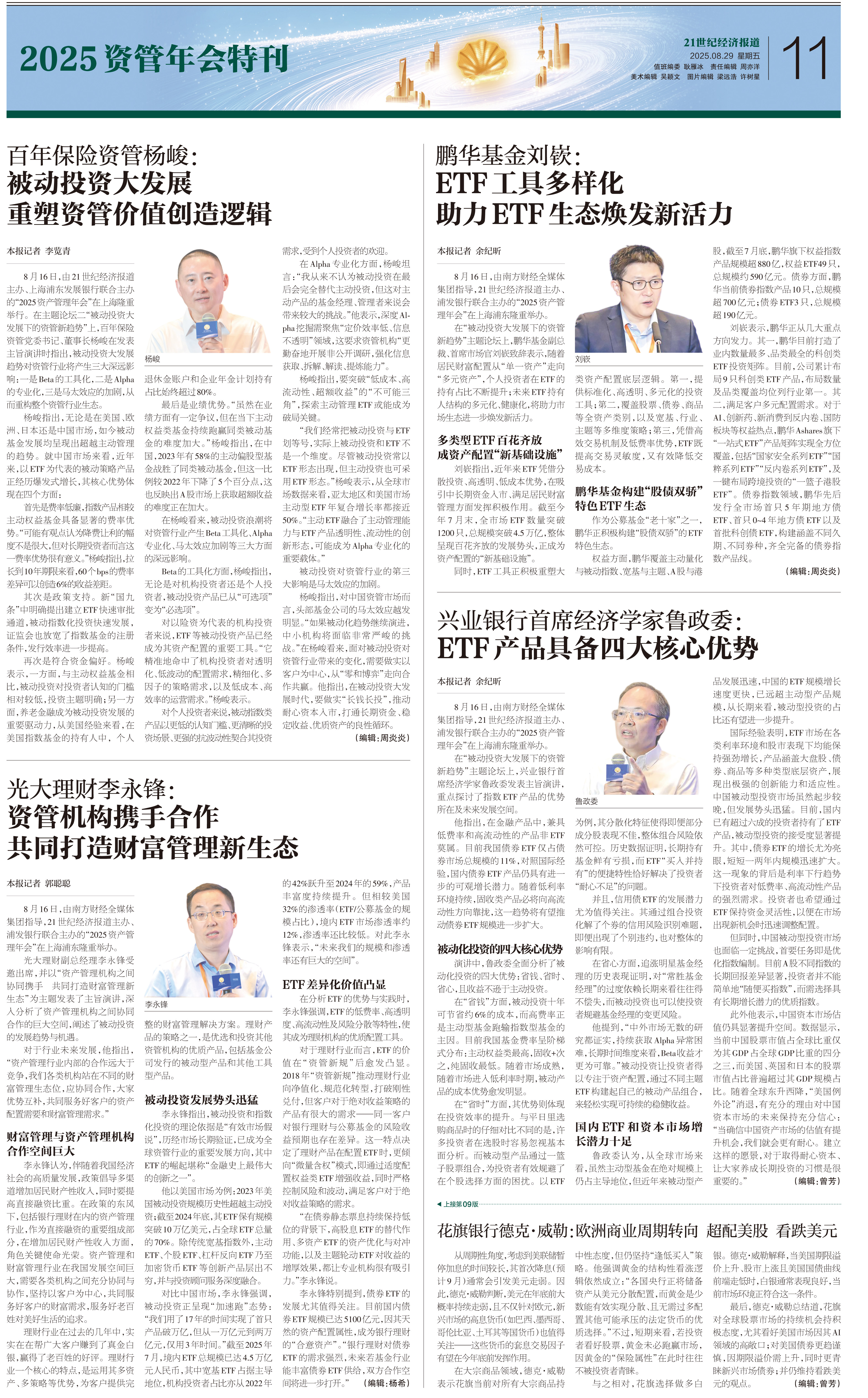 8月16日,“2025资产管理年会”在上海举办。“资产管理年会”始于2007年,历经十余年积淀,目前已是国内资管行业最具影响力的盛事之一。本届年会聚焦主题“破局与重构——大资管再造竞争力”,金融监管部门、权威专家学者、各大机构的负责人等千余名资管人士参加会议并围绕大资管发展趋势、多元资产配置等重要议题展开分享和讨论,本专题特刊精选了部分会议内容予以刊发。