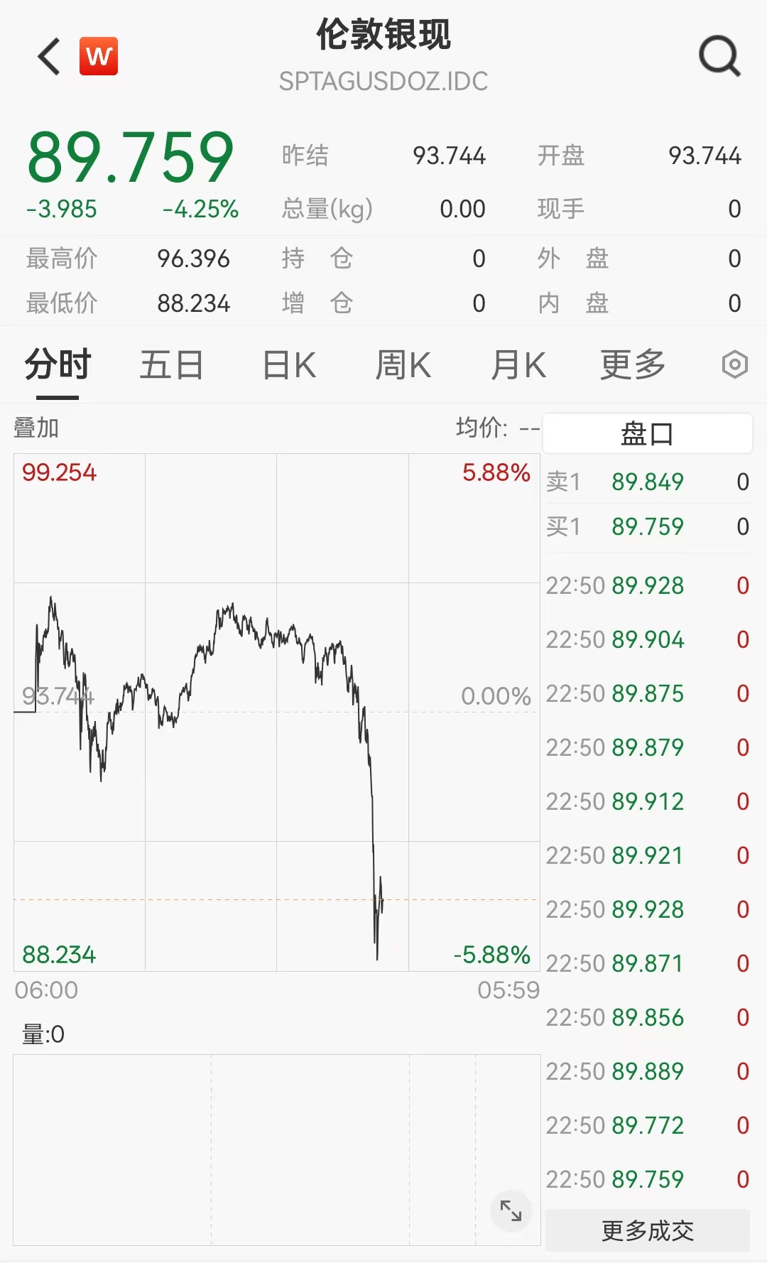 现货白银快速跳水, 一度跌超5% , 现报89.759美元/盎司。现货黄金也快速跳水,涨幅收窄至0.95% 。