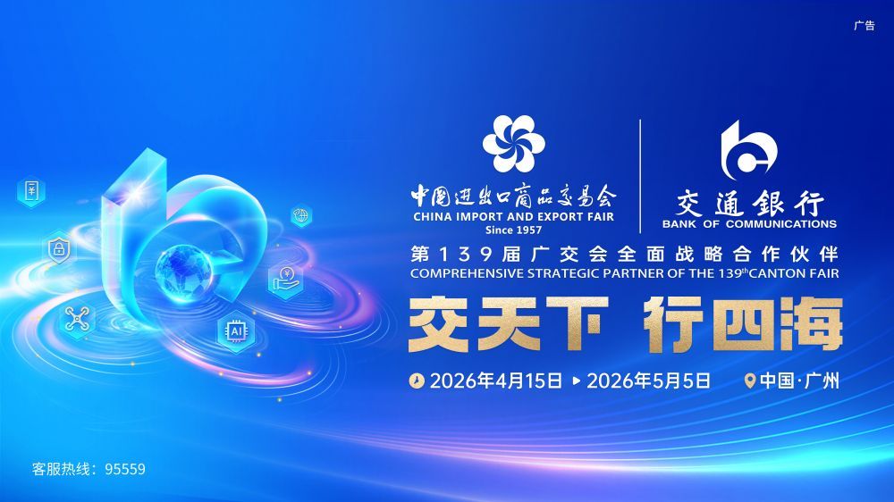 第 139 届广交会在广州盛大启幕。作为本届广交会全面战略合作伙伴,交通银行以 “交天下 行四海” 为理念,依托全球化服务网络与数字化金融能力,为参展企业提供跨境结算、贸易融资、汇率避险、供应链金融等一站式综合金融服务,以专业之力链接全球商机,护航中国外贸高质量发展。