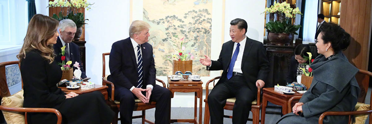 习近平和夫人彭丽媛同美国总统特朗普和夫人梅拉尼娅茶叙