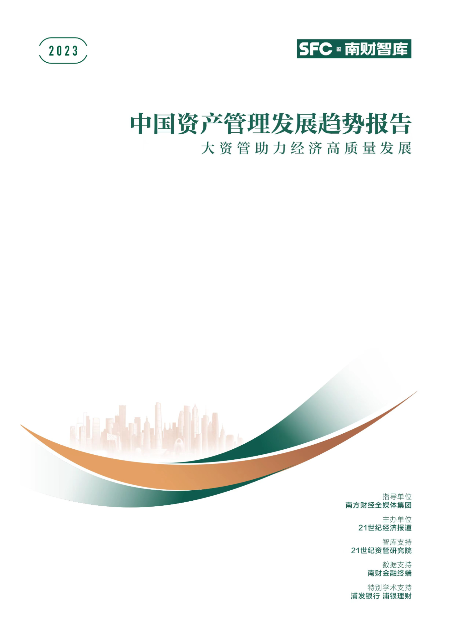《2023中国资产管理发展趋势报告》共设置高质量发展中的大资管、资管新生态、财富大趋势、资产配置以及对话资管30人五个部分。其中,高质量发展中的大资管部分,围绕经济金融高质量发展与大资管转型、现代化产业体系投资助力实体经济高质量发展、大资管十年变迁三个话题分别展开,全面复盘和梳理了大资管生态发展情况;资管新生态部分聚焦大资管生态十年变迁、波动下银行理财新特征、基金业被动投资发展、信托业蝶变四个话题,分别对大资管生态下重要子行业近年变化进行了梳理;财富大趋势部分,探讨了低利率时代的财富管理格局、券商财富管理转型、私人银行之战等行业关注的财富管理话题;资产配置部分,收录了2023保险资管发展和展望报告等资产配置领域热点话题;对话资管30人部分,邀请了浦银理财、平安集团、兴银理财、人保资产、信银理财、太保资产、建行私人银行部、中信银行、恒丰银行、南银理财、苏银理财等行业头部机构的领军人物,共同探讨资管行业发展的现状与未来。
