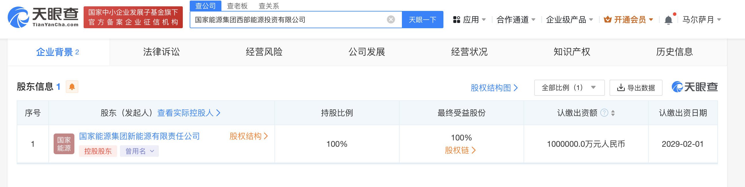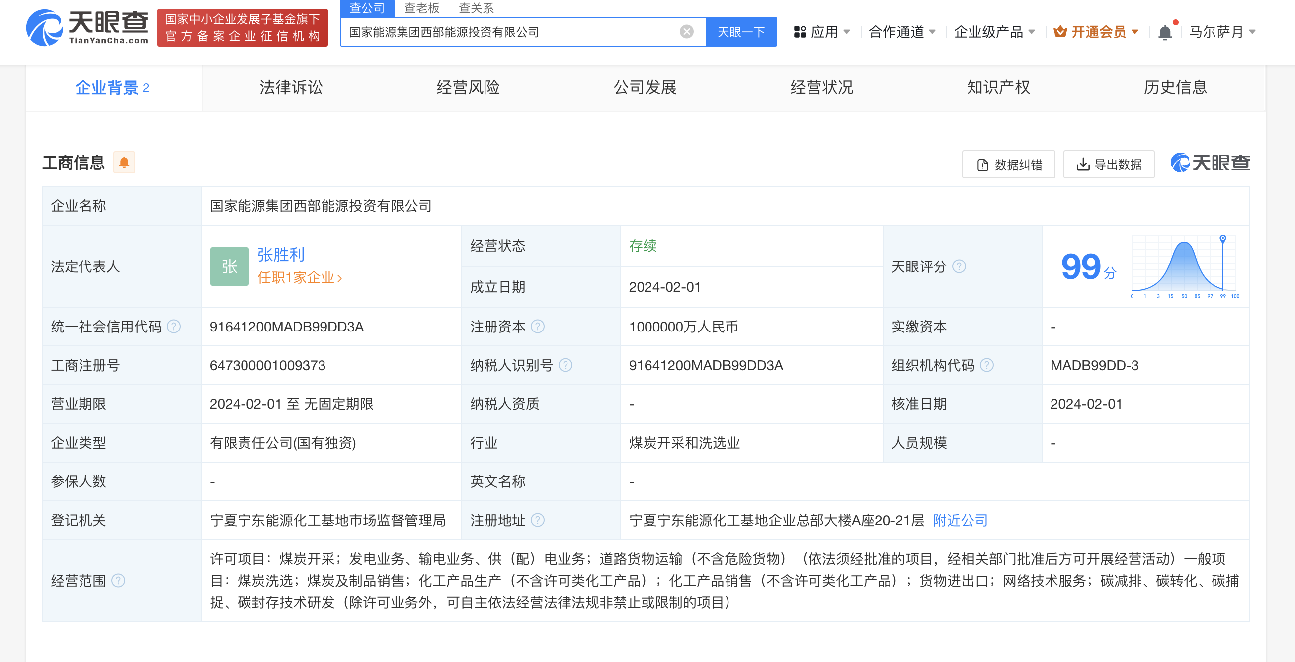 南方财经2月5日电,天眼查App显示,近日,国家能源集团西部能源投资有限公司成立,法定代表人为张胜利,注册资本100亿元人民币,经营范围含煤炭开采,发电业务、输电业务、供(配)电业务,化工产品生产(不含许可类化工产品),碳减排、碳转化、碳捕捉、碳封存技术研发等。股东信息显示,该公司由国家能源集团新能源有限责任公司全资持股。