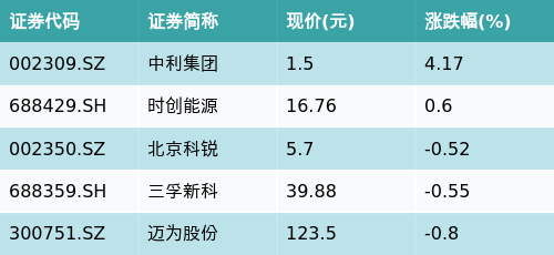 ETF最前线 | 天弘中证光伏产业ETF(159857)下跌2.55%,HJT电池主题走弱,中利集团上涨4.17%