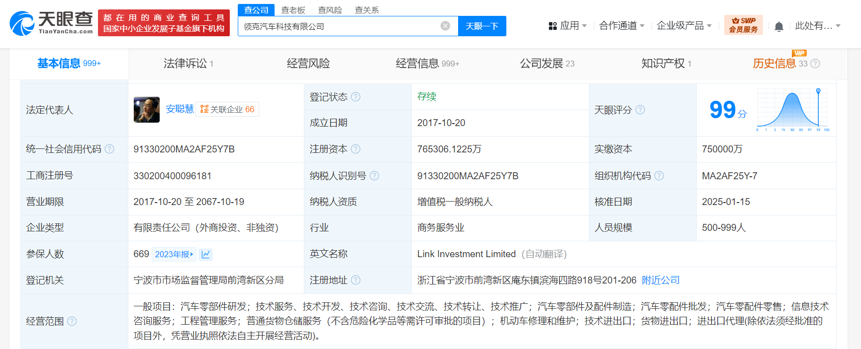 南方财经2月12日电,天眼查App显示,近日,领克汽车科技有限公司发生工商变更,沃尔沃汽车(中国)投资有限公司、浙江吉利控股集团有限公司退出股东行列,新增浙江极氪智能科技有限公司为股东,注册资本由75亿人民币增至约76.5亿人民币,同时,多位主要人员均发生变更。领克汽车科技有限公司成立于2017年10月,法定代表人为安聪慧,经营范围含汽车零部件研发、汽车零部件及配件制造、汽车零配件批发、信息技术咨询服务等。股东信息显示,该公司现由宁波吉利汽车实业有限公司、浙江极氪智能科技有限公司共同持股。