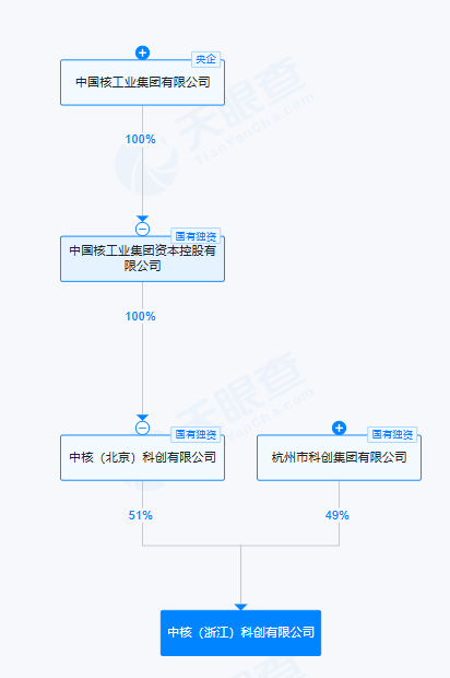 南方财经6月30日电,天眼查App显示,近日,中核(浙江)科创有限公司成立,法定代表人为赵欣,注册资本5亿人民币,经营范围包括新材料技术推广服务、科技中介服务、创业空间服务、园区管理服务、新兴能源技术研发、储能技术服务等。股权全景穿透图显示,该公司由中核集团旗下中核(北京)科创有限公司、杭州市科创集团有限公司分别持股51%、49%。