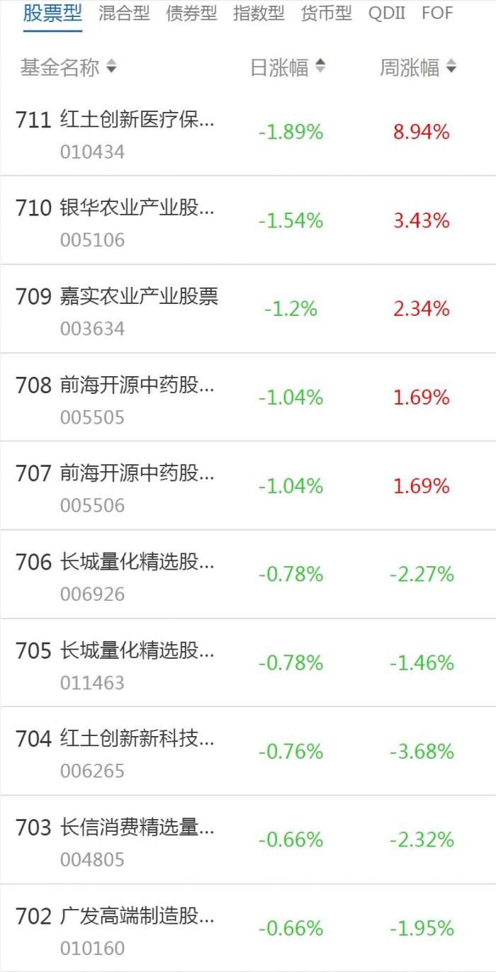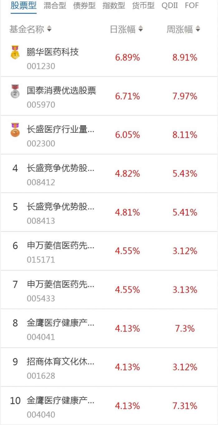 南方财经4月10日电,根据南财基金通数据:2023年4月7日当日收益较高的股票型基金包括:鹏华医药科技股票型证券投资基金(001230,日收益6.89%);国泰消费优选股票型证券投资基金(005970,日收益6.71%);长盛医疗行业量化配置股票型证券投资基金(002300,日收益6.05%)等。收益较低的股票型基金包括:红土创新医疗保健股票型发起式证券投资基金(010434,日收益-1.89%);银华农业产业股票型发起式证券投资基金(005106,日收益-1.54%);嘉实农业产业股票型证券投资基金(003634,日收益-1.20%)等。