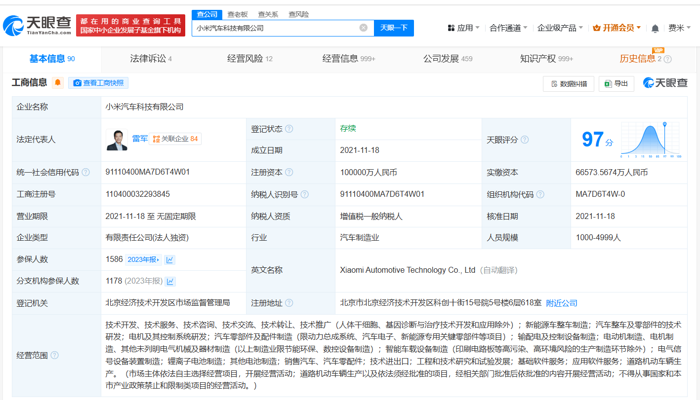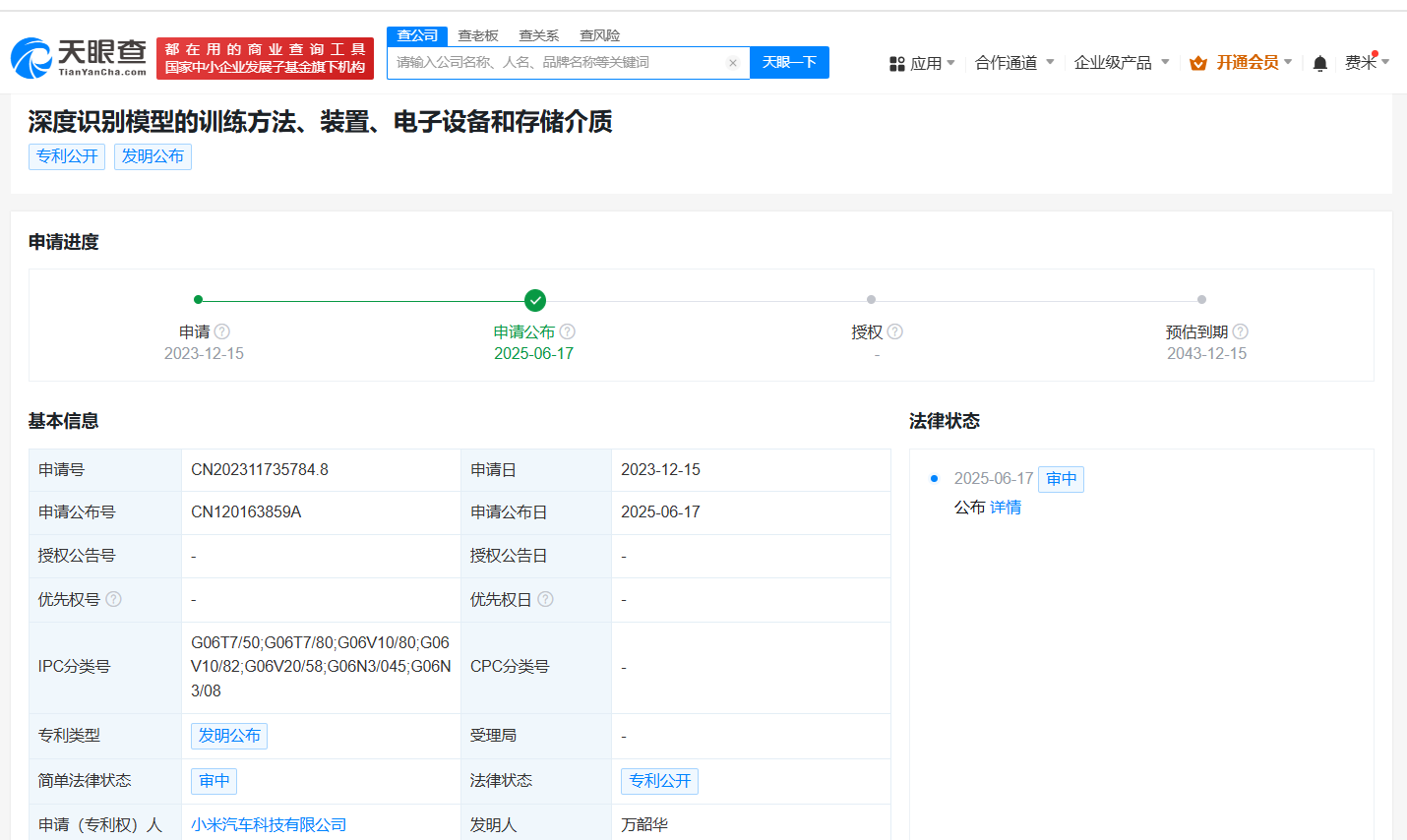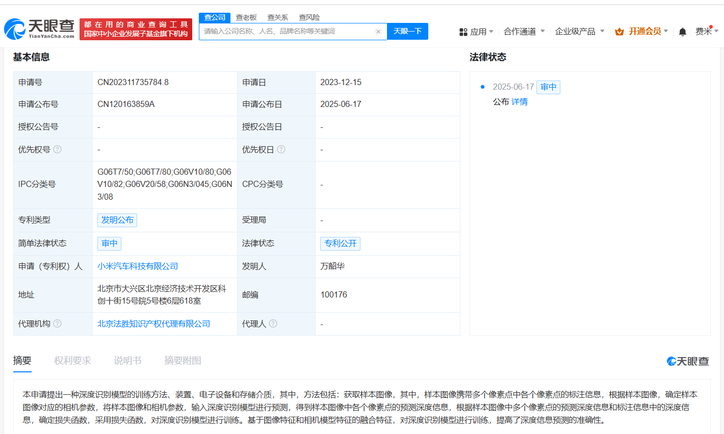 南方财经6月17日电,天眼查知识产权信息显示,近日,小米汽车科技有限公司申请的“深度识别模型的训练方法、装置、电子设备和存储介质”专利公布。摘要显示,本申请提出一种深度识别模型的训练方法、装置、电子设备和存储介质,其中,方法包括:获取样本图像,其中,样本图像携带多个像素点中各个像素点的标注信息,根据样本图像,确定样本图像对应的相机参数,将样本图像和相机参数,输入深度识别模型进行预测,得到样本图像中各个像素点的预测深度信息,根据样本图像中多个像素点的预测深度信息和标注信息中的深度信息,确定损失函数,采用损失函数,对深度识别模型进行训练。基于图像特征和相机模型特征的融合特征,对深度识别模型进行训练,提高了深度信息预测的准确性。
