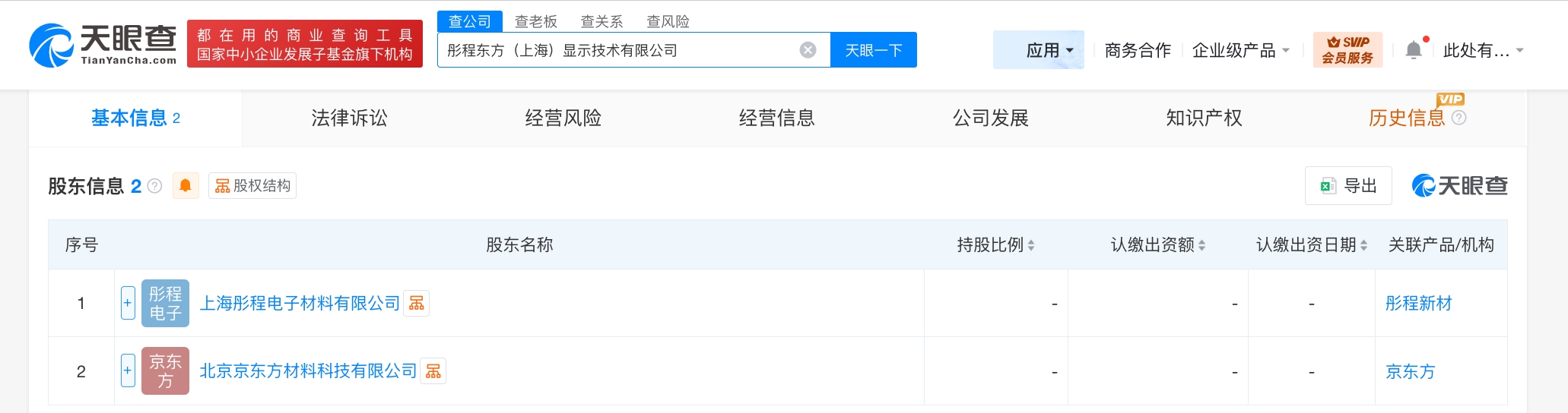 南方财经2月11日电,天眼查App显示,近日,彤程东方(上海)显示技术有限公司成立,法定代表人为张旺,注册资本1亿人民币,经营范围为新材料技术研发、新材料技术推广服务、化工产品销售、电子专用材料销售。股东信息显示,该公司由京东方旗下北京京东方材料科技有限公司、上海彤程电子材料有限公司共同持股。