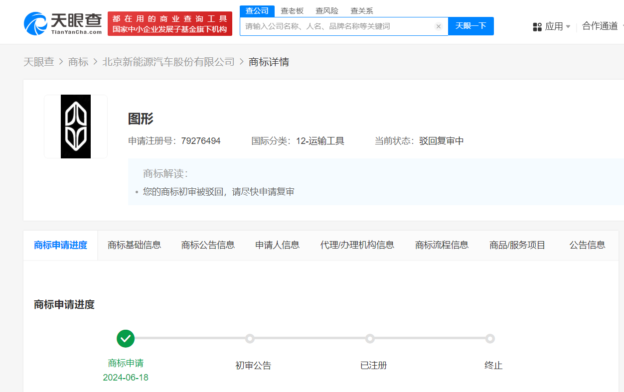 南方财经1月24日电,天眼查知识产权信息显示,近日,华为技术有限公司将其申请注册的多枚“STELATO”图形商标转让至北京新能源汽车股份有限公司,国际分类均为运输工具,上述商标申请于去年6月至11月,当前商标状态多为等待实质审查,部分商标状态为驳回复审中。值得一提的是,2023年11月,华为公司已向北汽新能源转让多枚“STELATO”文字商标。公开信息显示,STELATO(享界)为华为与北汽合作打造的全新品牌,2024年3月,工信部公布了华为与北汽联合打造的智选车车型申报信息,命名为享界S9。