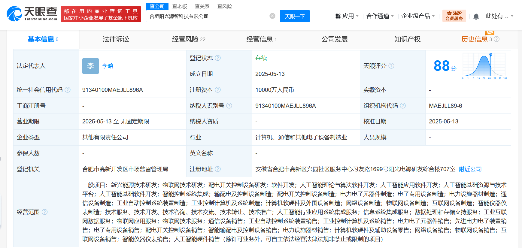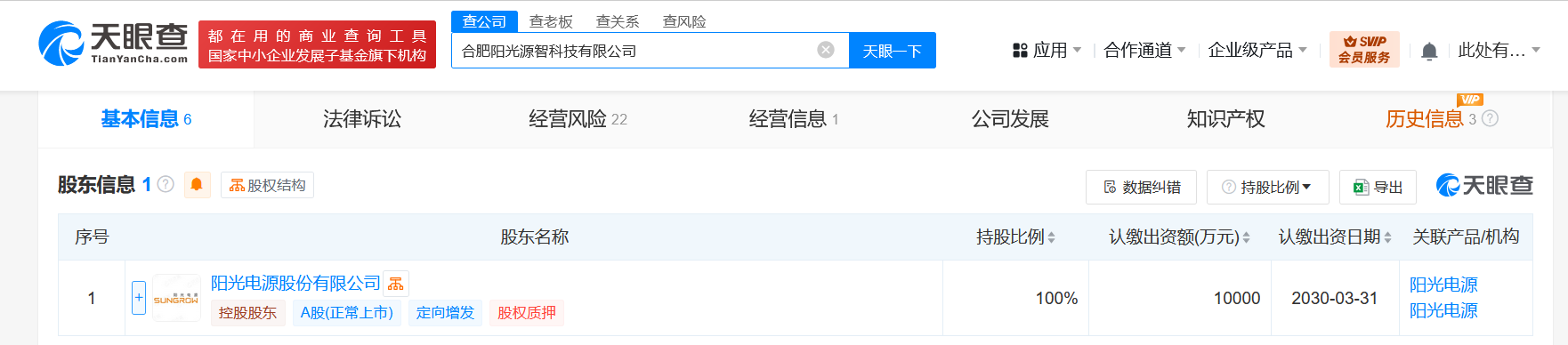 阳光电源在合肥成立科技新公司 注册资本1亿