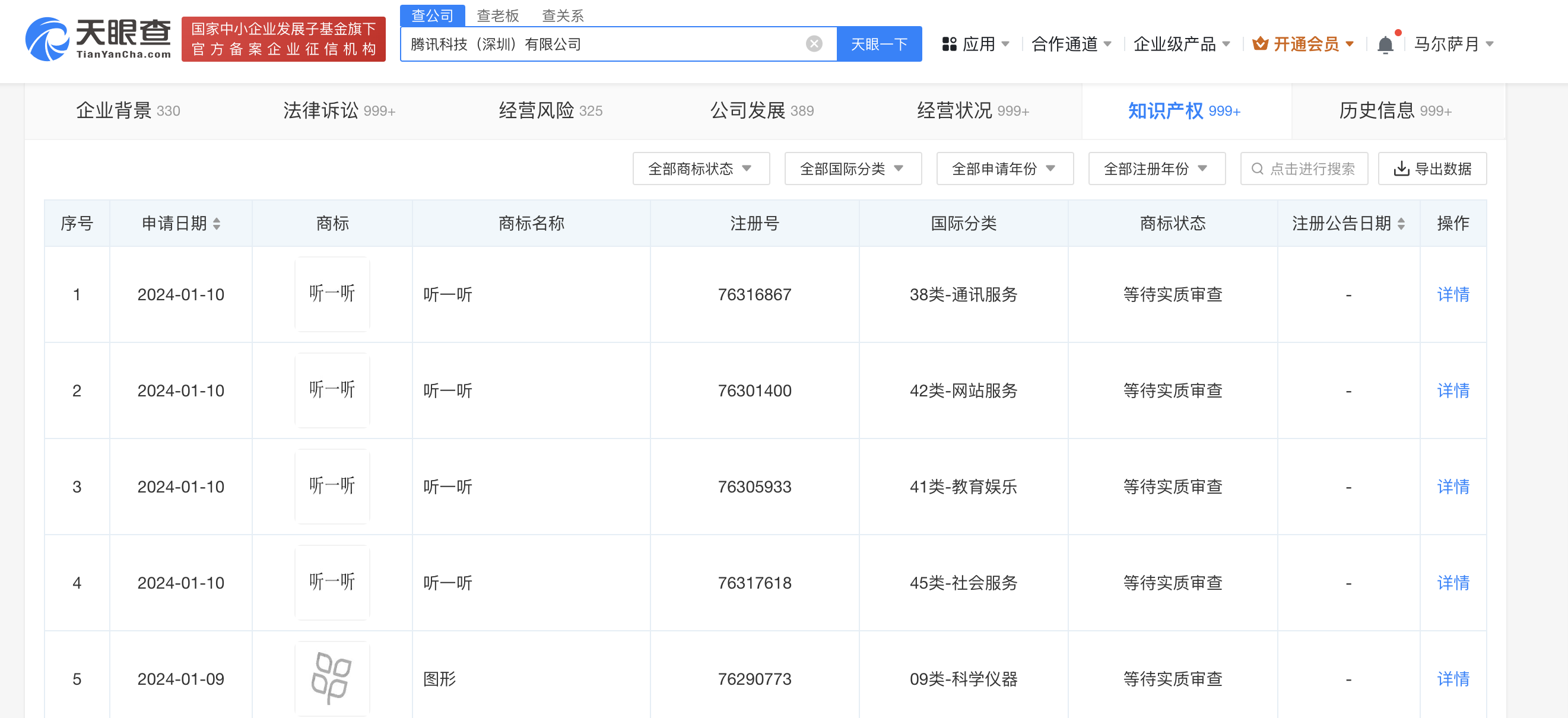 腾讯申请听一听商标以及全民短剧商标
