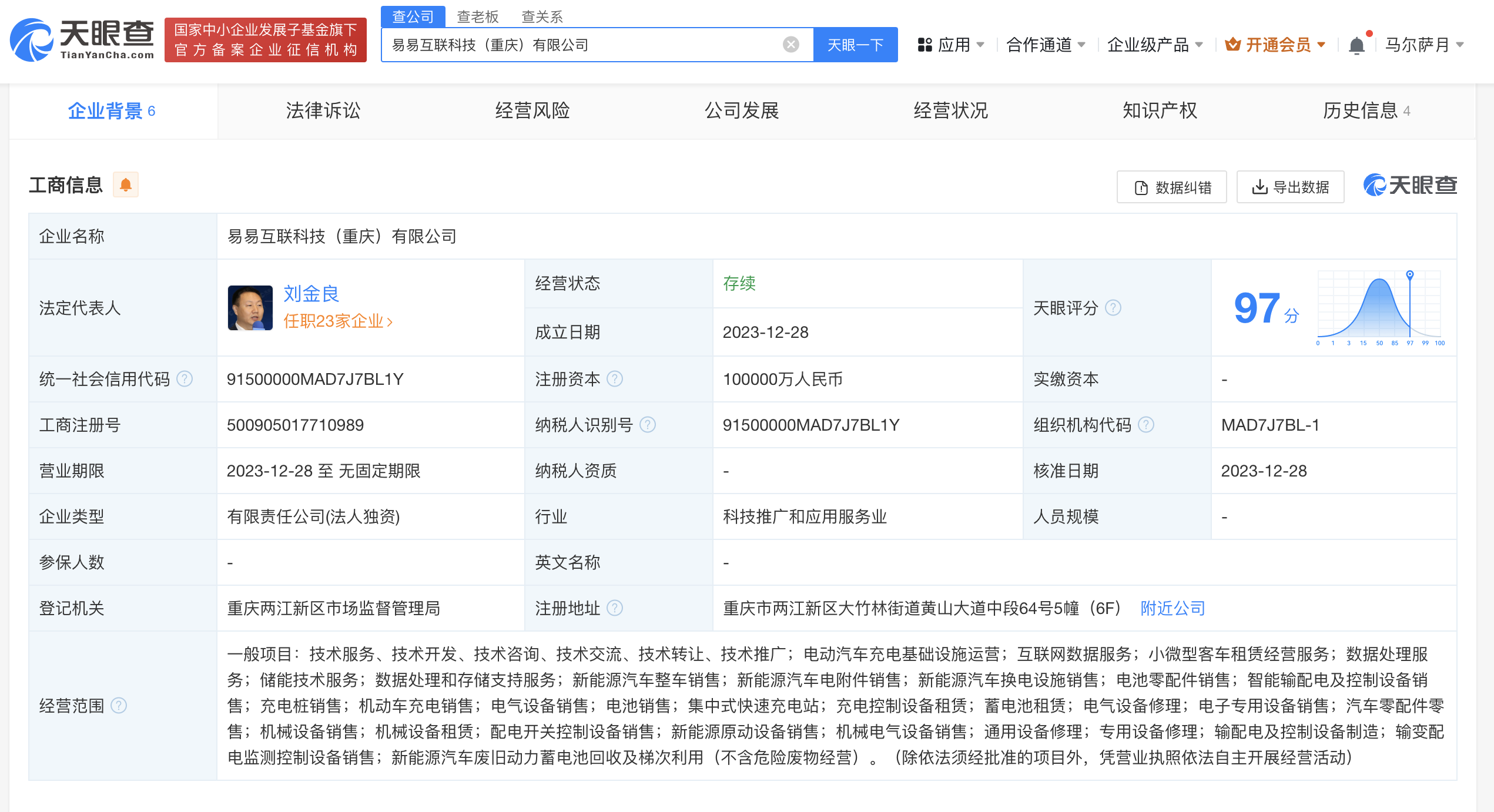 南方财经1月2日电,天眼查App显示,近日,易易互联科技(重庆)有限公司成立,法定代表人为刘金良,注册资本10亿人民币,经营范围含电动汽车充电基础设施运营、互联网数据服务、储能技术服务、新能源汽车整车销售、智能输配电及控制设备销售、充电桩销售、机械电气设备销售、新能源汽车废旧动力蓄电池回收及梯次利用等。股东信息显示,该公司由吉利旗下浙江吉利启征汽车科技有限公司全资持股,后者为吉利汽车集团有限公司全资子公司。