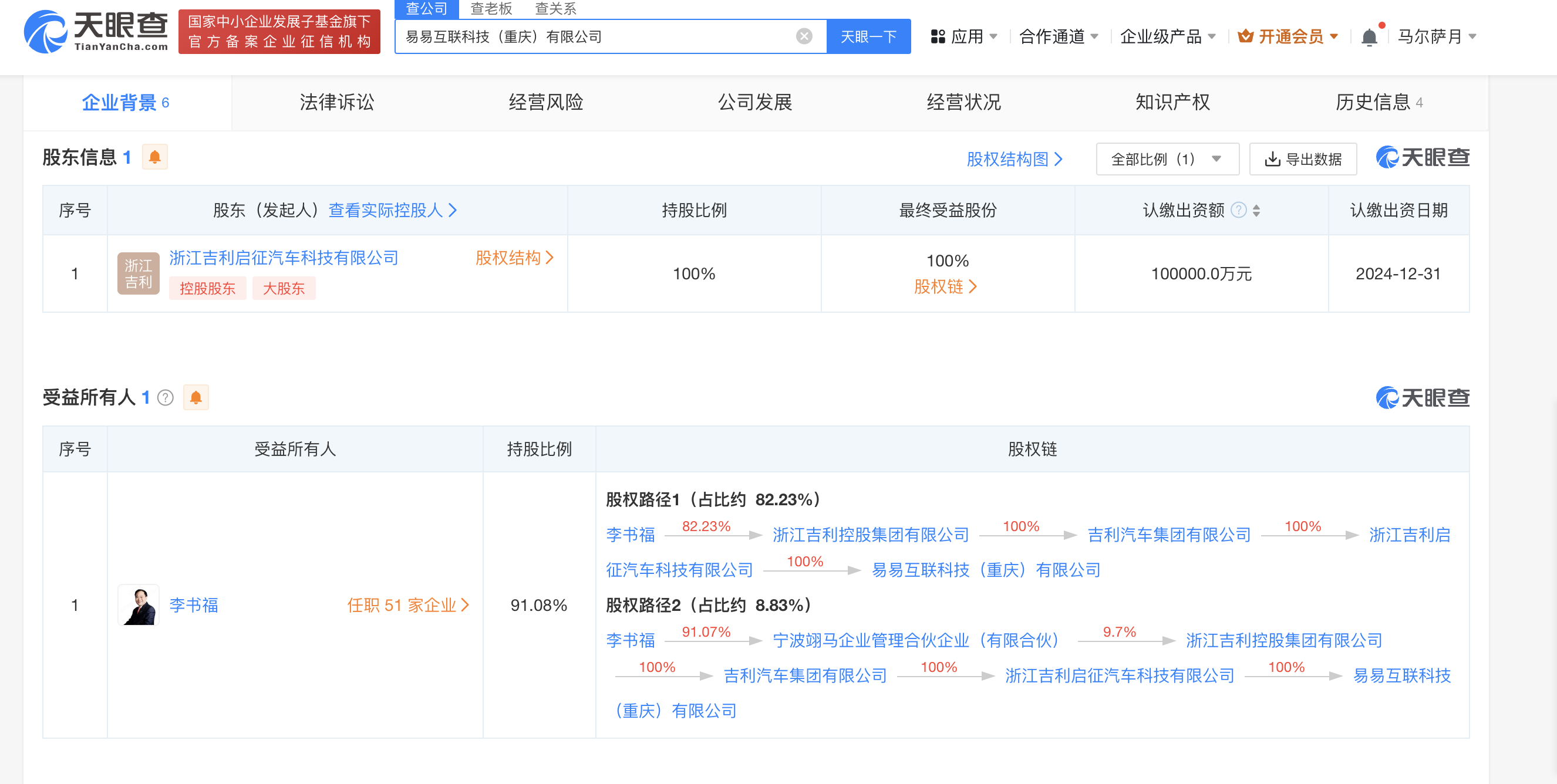 吉利在重庆成立易易互联科技公司 注册资本10亿