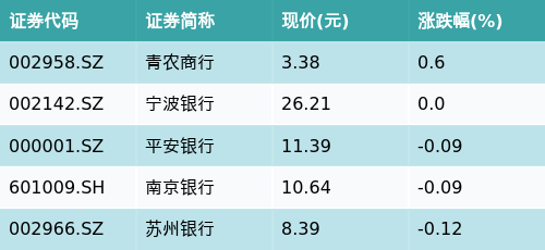 ETF最前线 | 南方中证银行ETF(512700)下跌0.92%,银行主题走弱,青农商行上涨0.6%