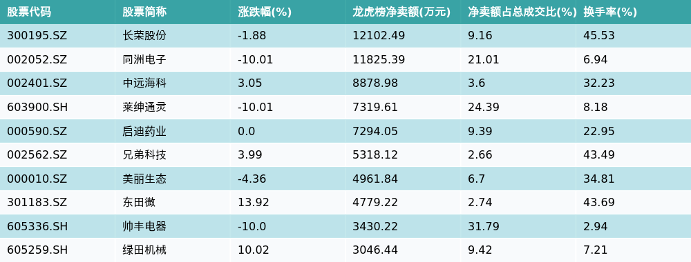 7月15日龙虎榜净卖出额前10个股
