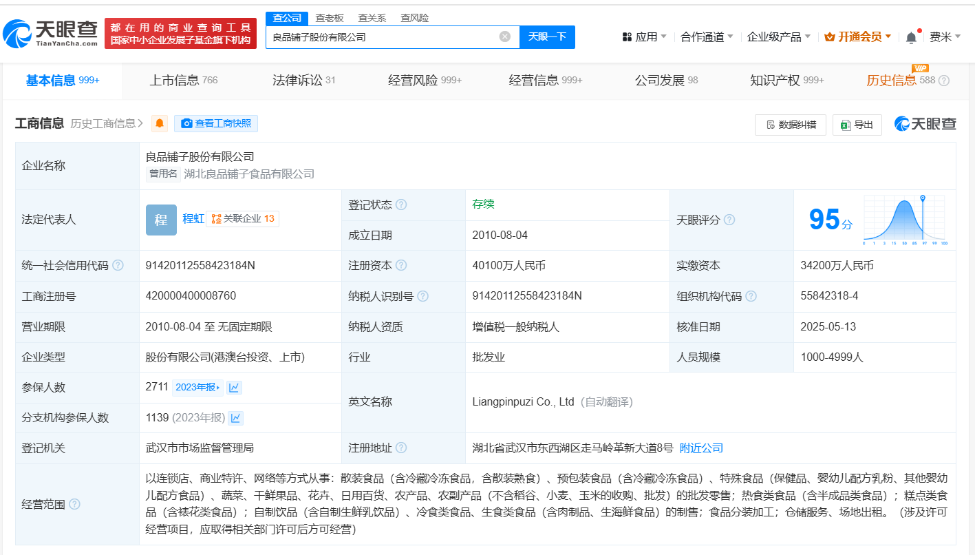 程虹任良品铺子董事长 良品铺子换帅完成工商变更