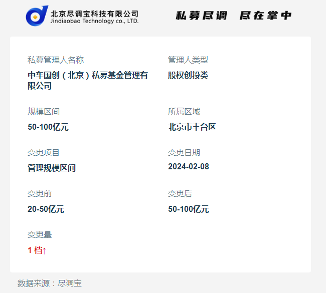 中车国创(北京)私募基金管理有限公司管理规模上调至50-100亿元