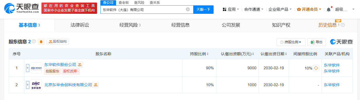 南方财经2月21日电,天眼查App显示,近日,东华软件(大连)有限公司成立,法定代表人为赵炜,注册资本1亿人民币,经营范围包括计算机软硬件及辅助设备零售、计算机系统服务、数据处理服务等。股东信息显示,该公司由东华软件(002065)及旗下北京东华合创科技有限公司共同持股。