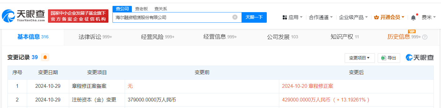 海尔融资租赁公司增资至42.9亿