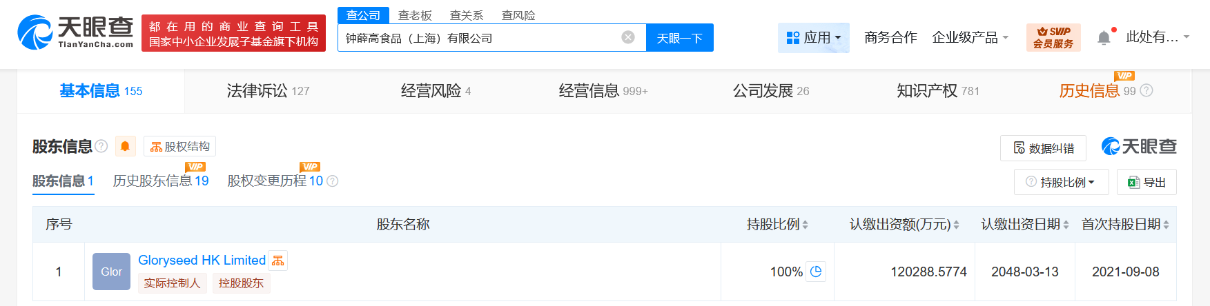钟薛高食品(上海)有限公司因资不抵债被申请破产