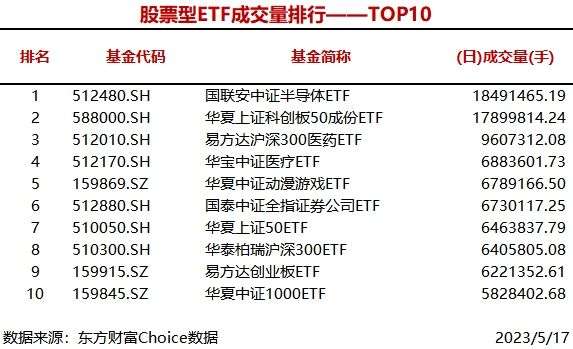 2只股票型ETF成交量超1000万手,国联安中证半导体ETF成交1849.15万手