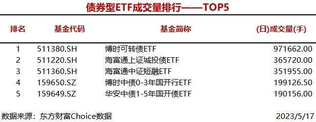 南方财经5月17日电,据东方财富Choice数据统计,今日共2只股票型ETF成交量超1000万手,国联安中证半导体ETF成交1849.15万手,债券型ETF成交量最大的是博时可转债ETF(97.17万手),商品型ETF成交量最大的是华安黄金易ETF(146.11万手)。