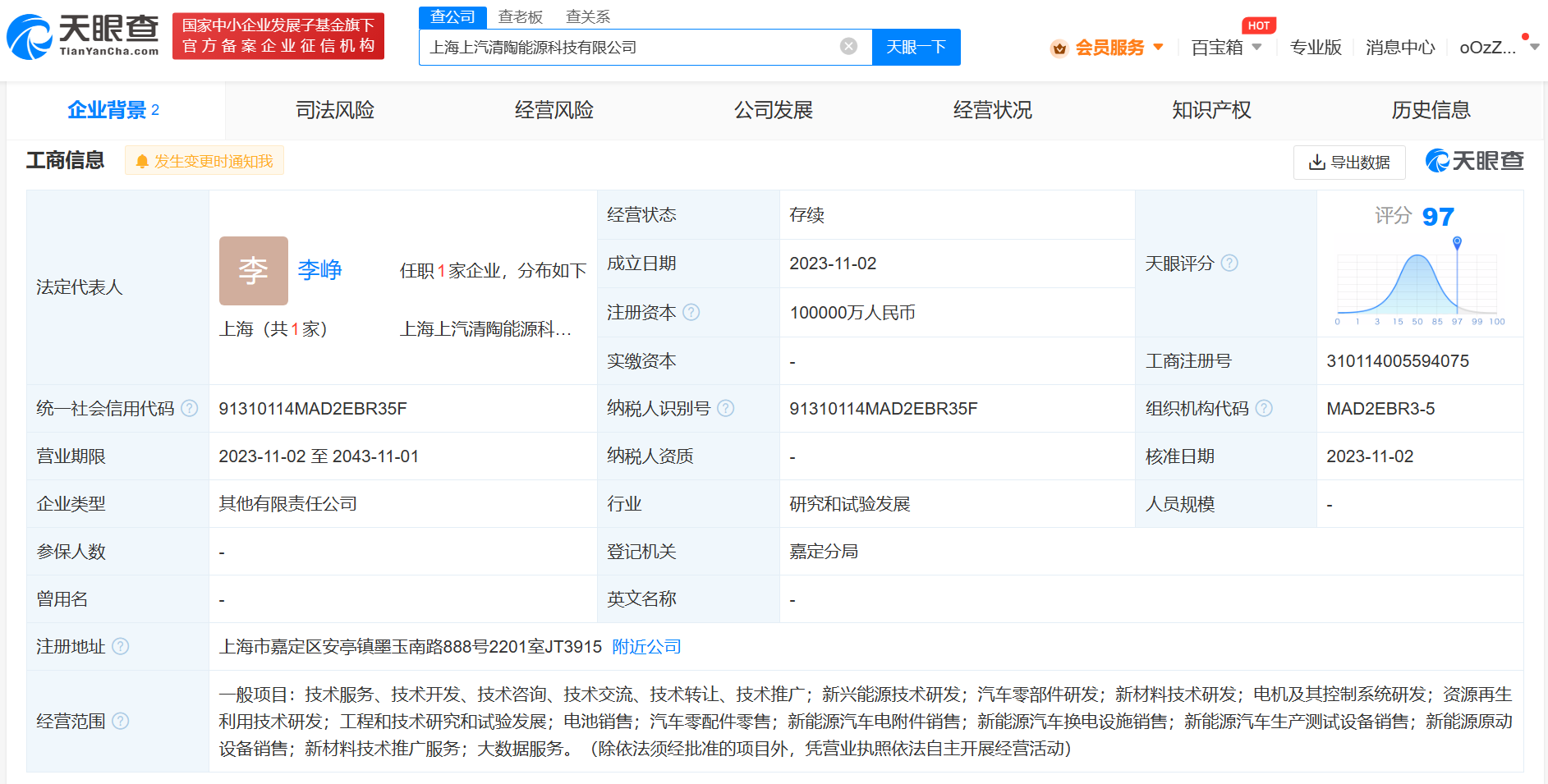 上汽集团清陶能源成立能源科技公司 注册资本10亿