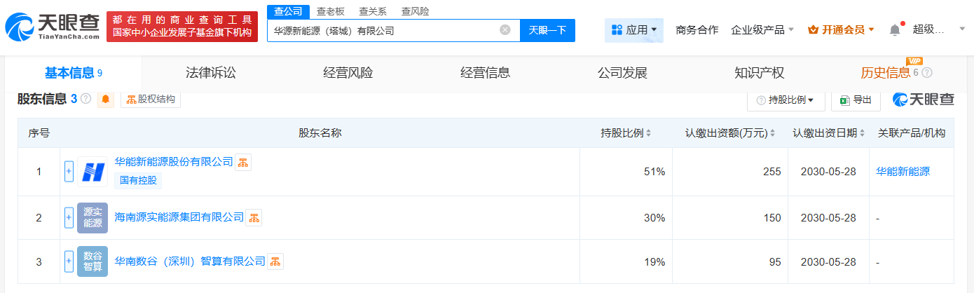 南方财经6月26日电,天眼查App显示,近日,华源新能源(塔城)有限公司成立,法定代表人为孟祥东,注册资本500万人民币,经营范围包括风力发电技术服务、太阳能发电技术服务、新兴能源技术研发等。股东信息显示,该公司由华能新能源股份有限公司、海南源实能源集团有限公司、华南数谷(深圳)智算有限公司共同持股。