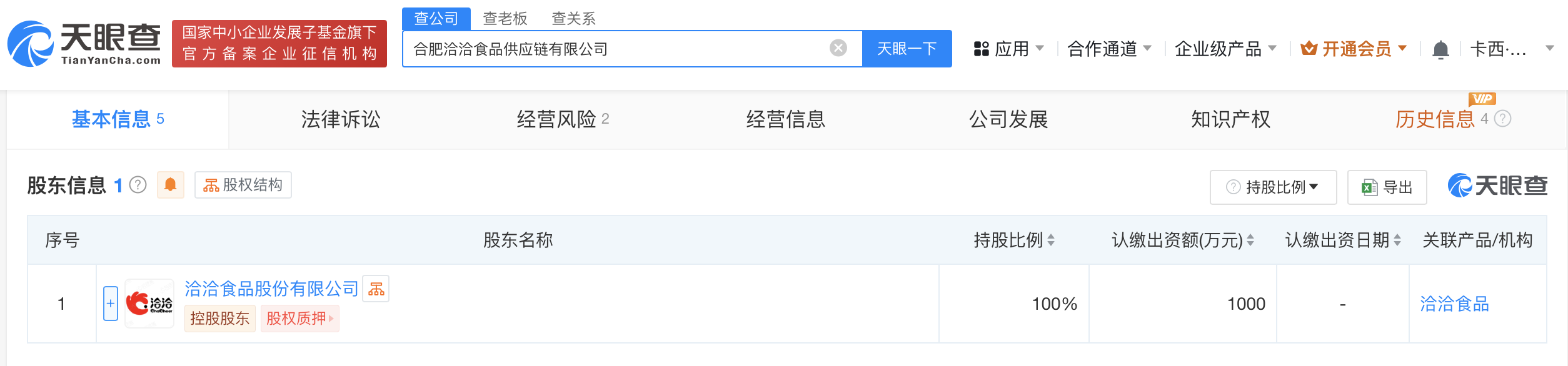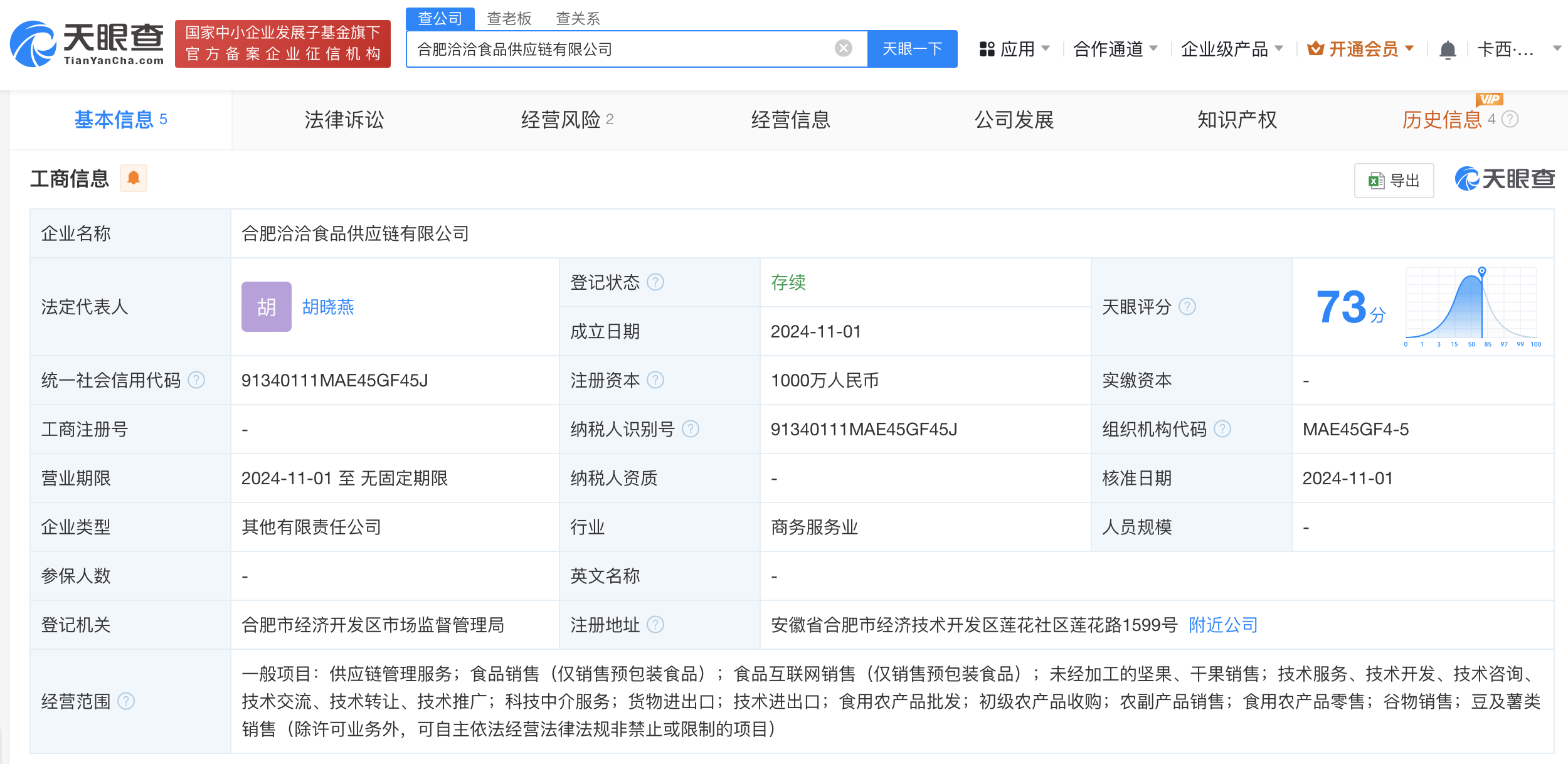 洽洽食品在合肥成立供应链公司 注册资本1000万
