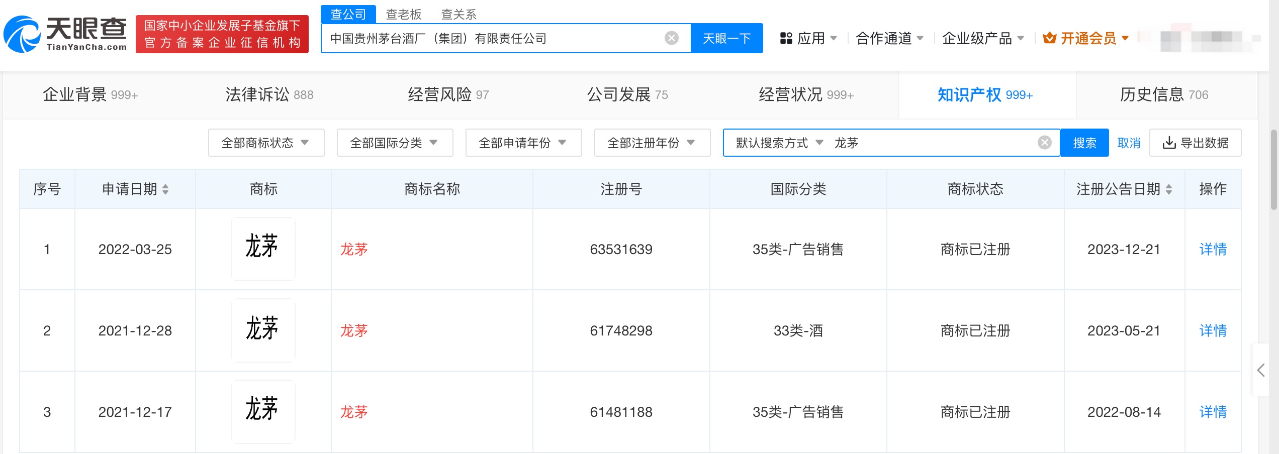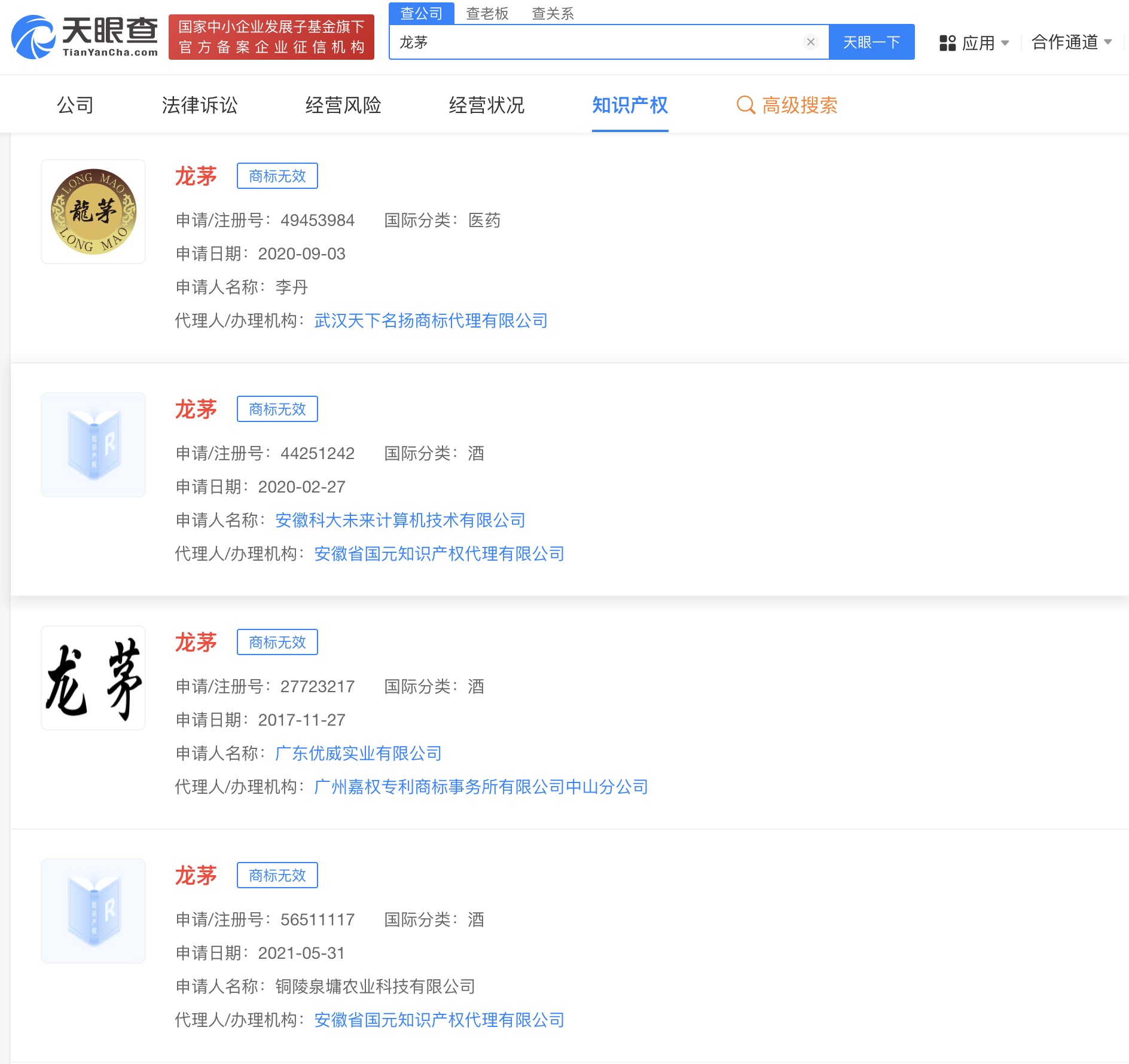 茅台集团已注册多枚龙茅商标 龙茅商标曾遭多方抢注