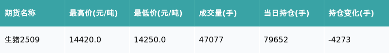 生猪主力合约收涨1.27%