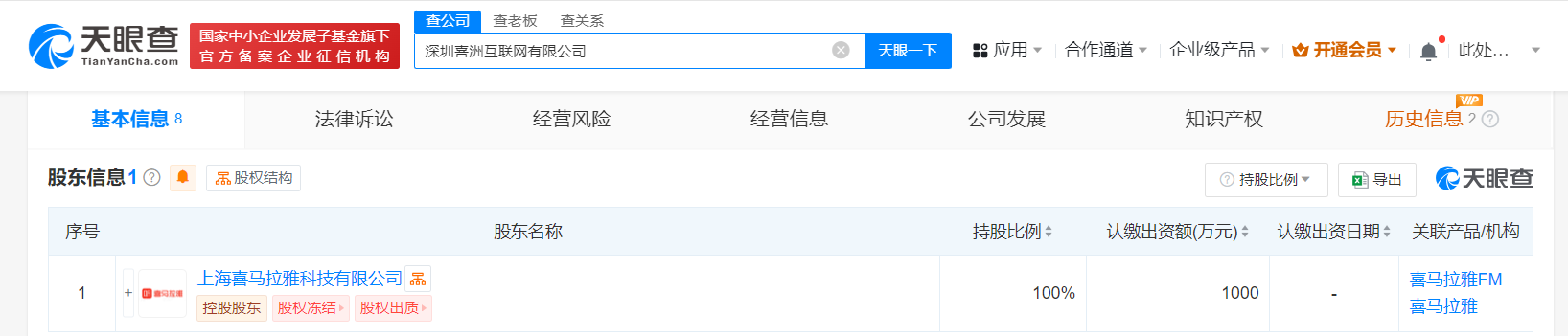 喜马拉雅在深圳成立互联网公司 注册资本1000万