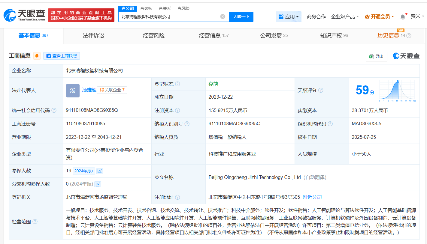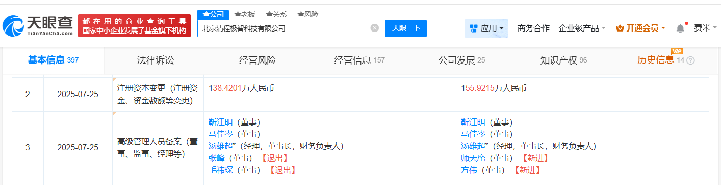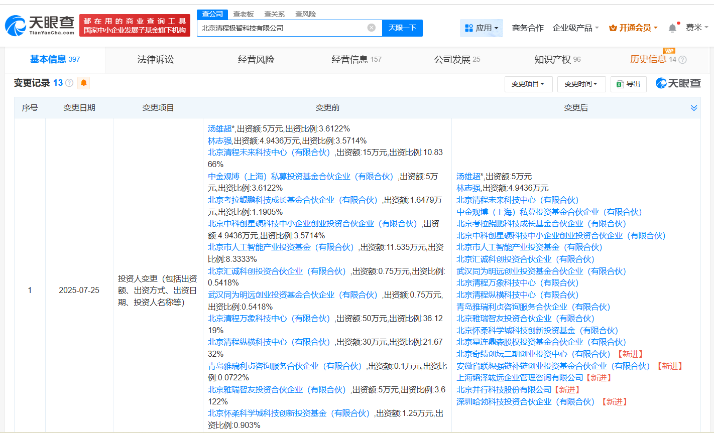 南方财经7月28日电,天眼查App显示,近日,北京清程极智科技有限公司发生工商变更,新增华为旗下深圳哈勃科技投资合伙企业(有限合伙)、联想创投旗下安徽省联想强链补链创业投资基金合伙企业(有限合伙)等为股东,注册资本由约138万人民币增至约156万人民币,同时部分高管发生变更。该公司成立于2023年12月,法定代表人为汤雄超,经营范围包括人工智能理论与算法软件开发、人工智能基础资源与技术平台、人工智能基础软件开发等,现由汤雄超、林志强及上述新增股东等共同持股。公开信息显示,清程极智是清华系人工智能基础设施(AIInfra)领域创新企业,为国产算力提供全栈式解决方案,通过提升上层模型训练和推理效率,降低AI应用开发门槛与成本。