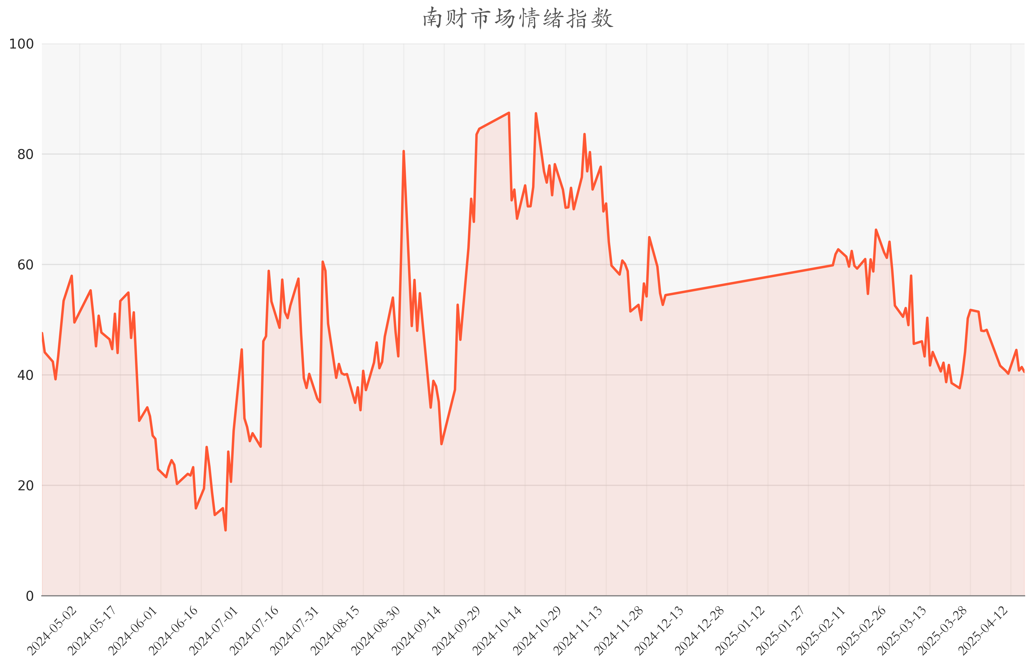 今日南财市场情绪指数为40.55,市场投资处于中立水平