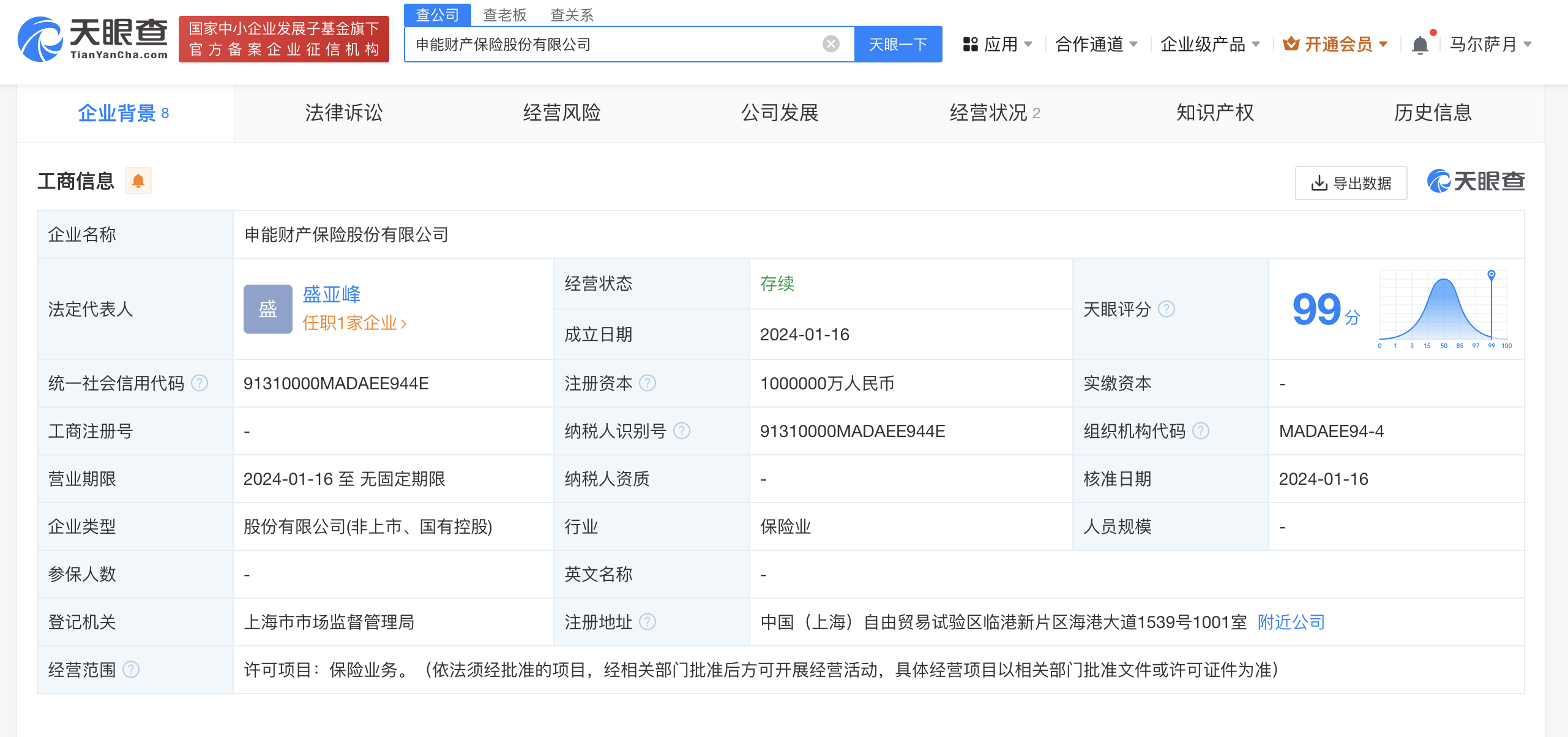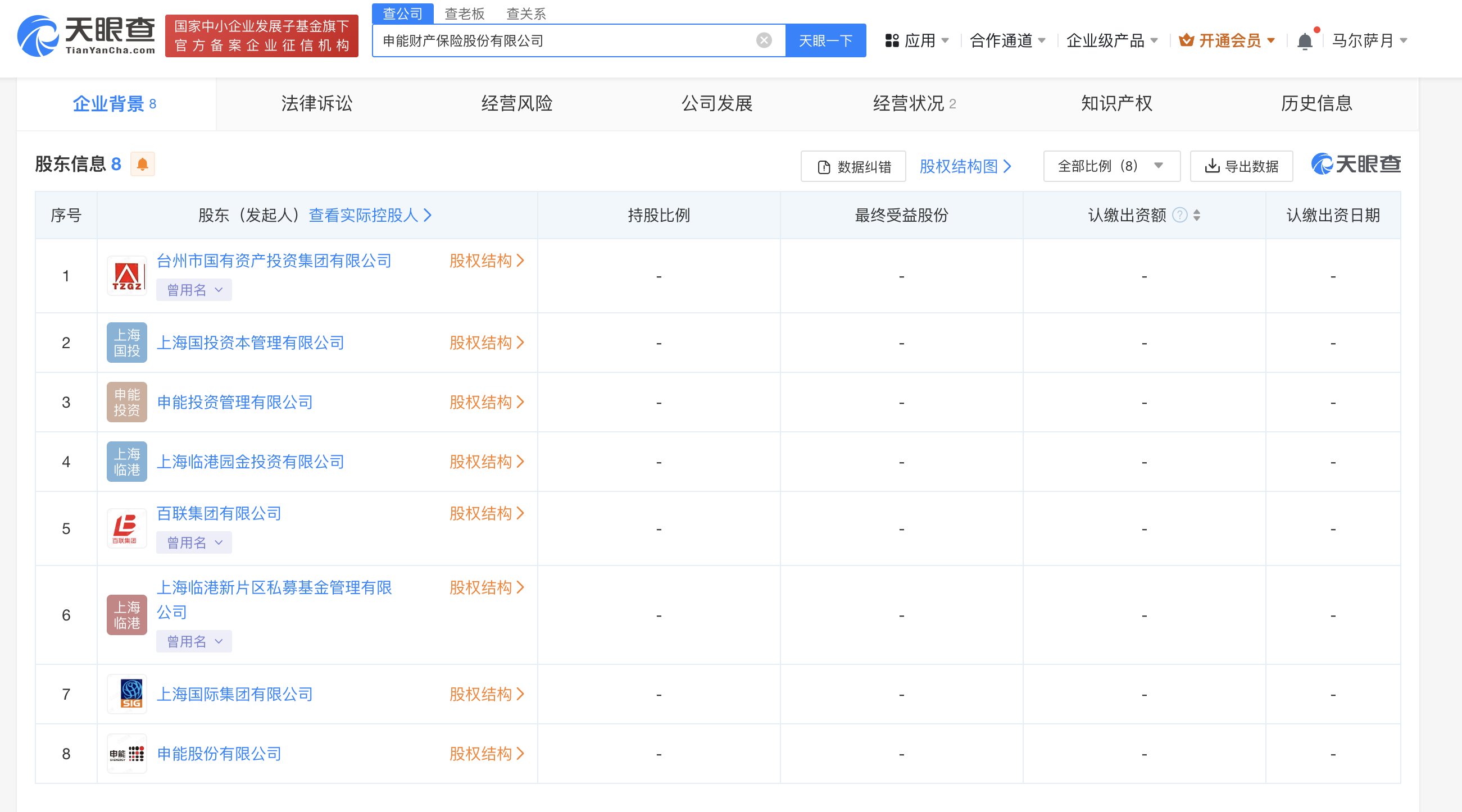 南方财经1月17日电,天眼查App显示,1月16日,申能财产保险股份有限公司成立,法定代表人为盛亚峰,注册资本100亿人民币,经营范围含保险业务。股东信息显示,该公司由申能股份(600642)、申能投资管理有限公司、上海国投资本管理有限公司、台州市国有资产投资集团有限公司、百联集团有限公司、上海国际集团有限公司、上海临港园金投资有限公司、上海临港新片区私募基金管理有限公司共同持股。据媒体报道,去年9月,国家金融监督管理总局批复同意申能投资管理有限公司、上海国际集团有限公司等8家单位共同发起筹建申能财产保险股份有限公司。