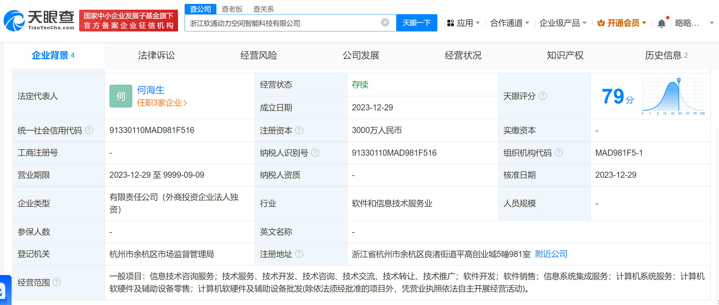 软通动力在浙江成立空间智能公司 注册资本3000万