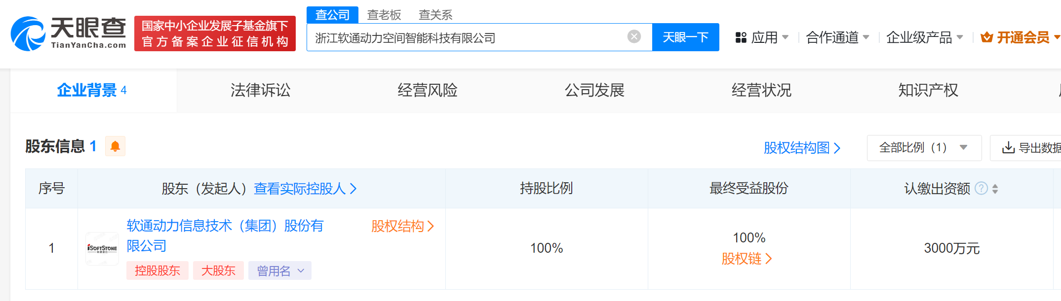南方财经1月2日电,天眼查App显示,近日,浙江软通动力空间智能科技有限公司成立,法定代表人为何海生,注册资本3000万人民币,经营范围含软件开发、销售,信息系统集成服务,计算机系统服务,计算机软硬件及辅助设备零售、批发等。股东信息显示,该公司由软通动力(301236)全资持股。