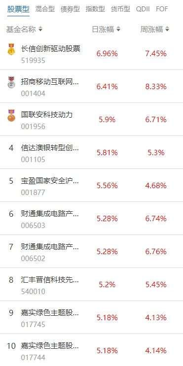 南方财经3月1日电,根据南财基金通数据:2024年2月29日当日收益靠前的股票型基金包括:长信创新驱动股票型证券投资基金(519935,日收益6.96%);招商移动互联网产业股票型证券投资基金(001404,日收益6.41%);国联安科技动力股票型证券投资基金(001956,日收益5.90%)等。收益较低的股票型基金包括:鑫元核心资产股票型发起式证券投资基金(006193,日收益-1.01%);中银港股通优势成长股票型证券投资基金(010204,日收益-0.74%);银华港股通精选股票型发起式证券投资基金(009017,日收益-0.05%)等。